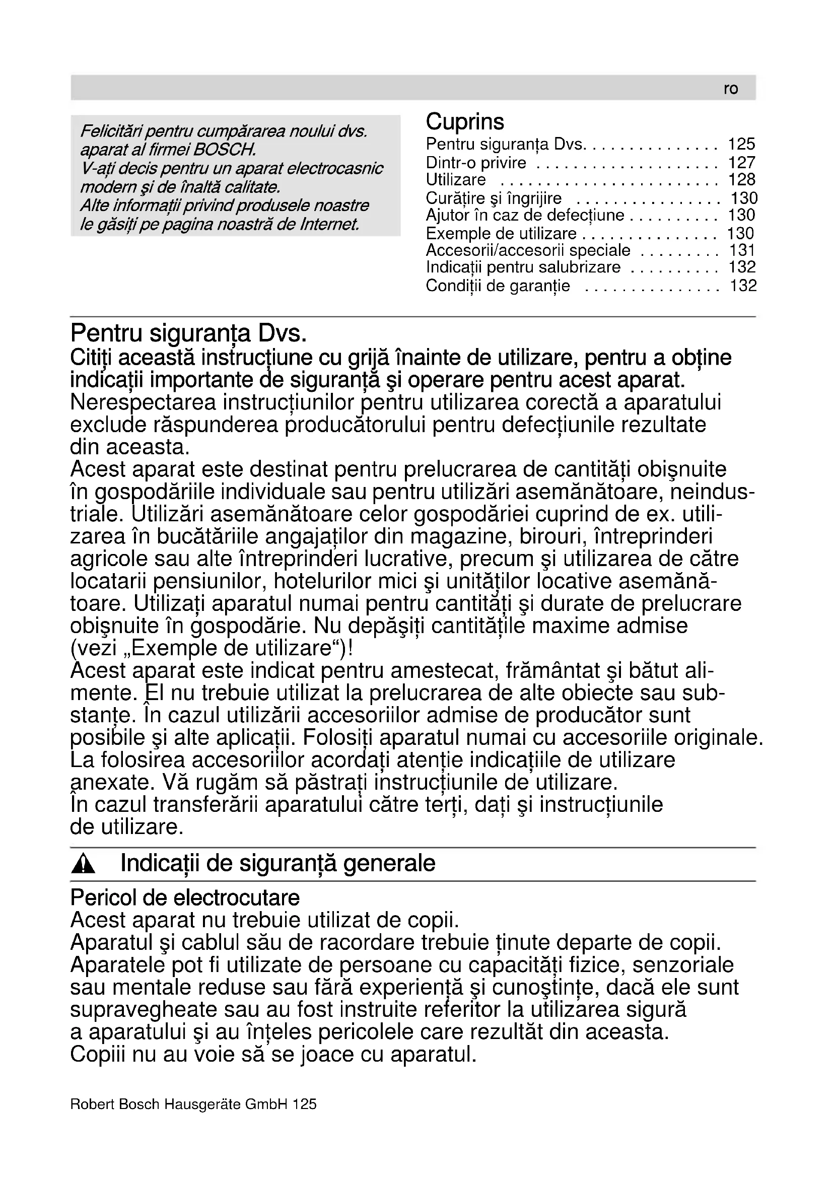 - Pridržujemo si pravico do sprememb.Robert Bosch Hausgeräte GmbH 125 Cuprins Pentru siguranţa Dvs p. 125