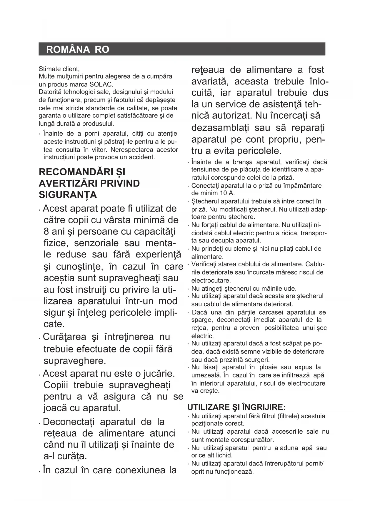 - Acest aparat este destinat numai pentru utilizarea in gospodarie si, nu pentru UTILIZARI profesionale sau industriiale.