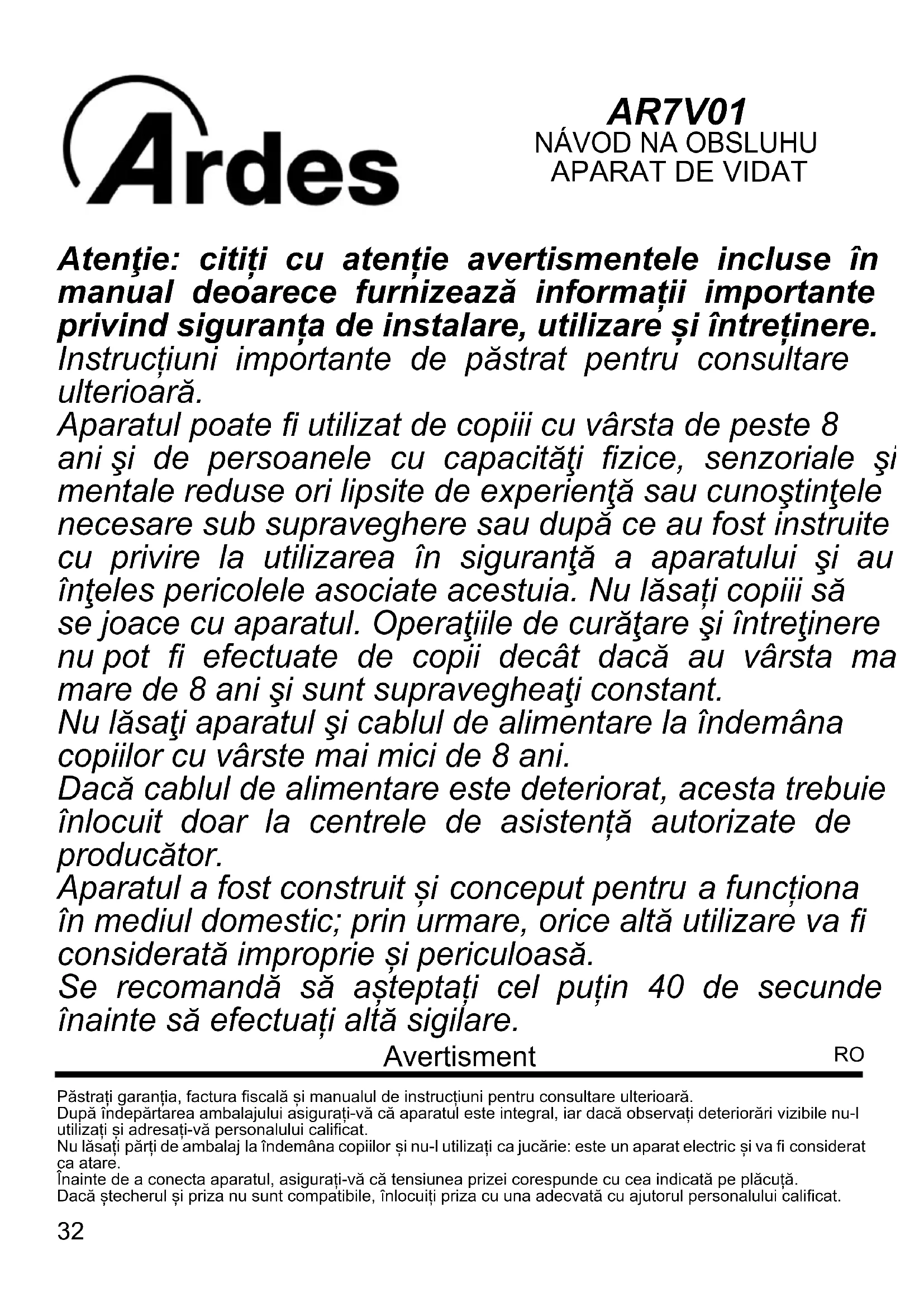 MANUAL DE UTILIZARE AR7000S2 ARDES