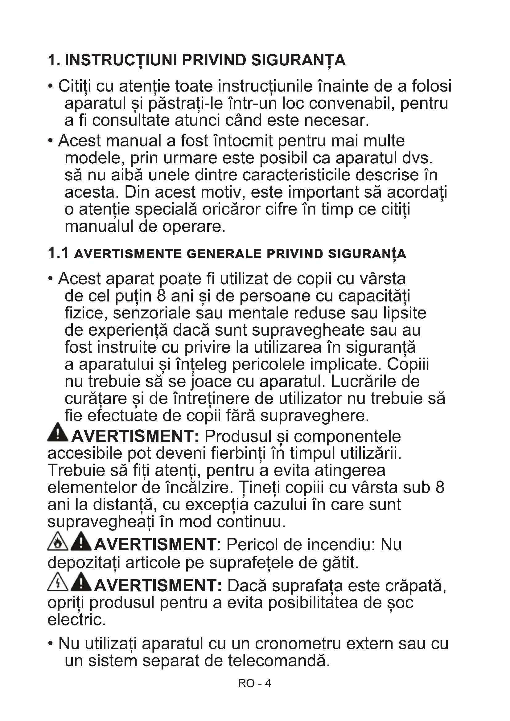 - Nu utilizați aparatul cu un cronometru extern sau cu un sistem separat de telecomandă.RO - 5