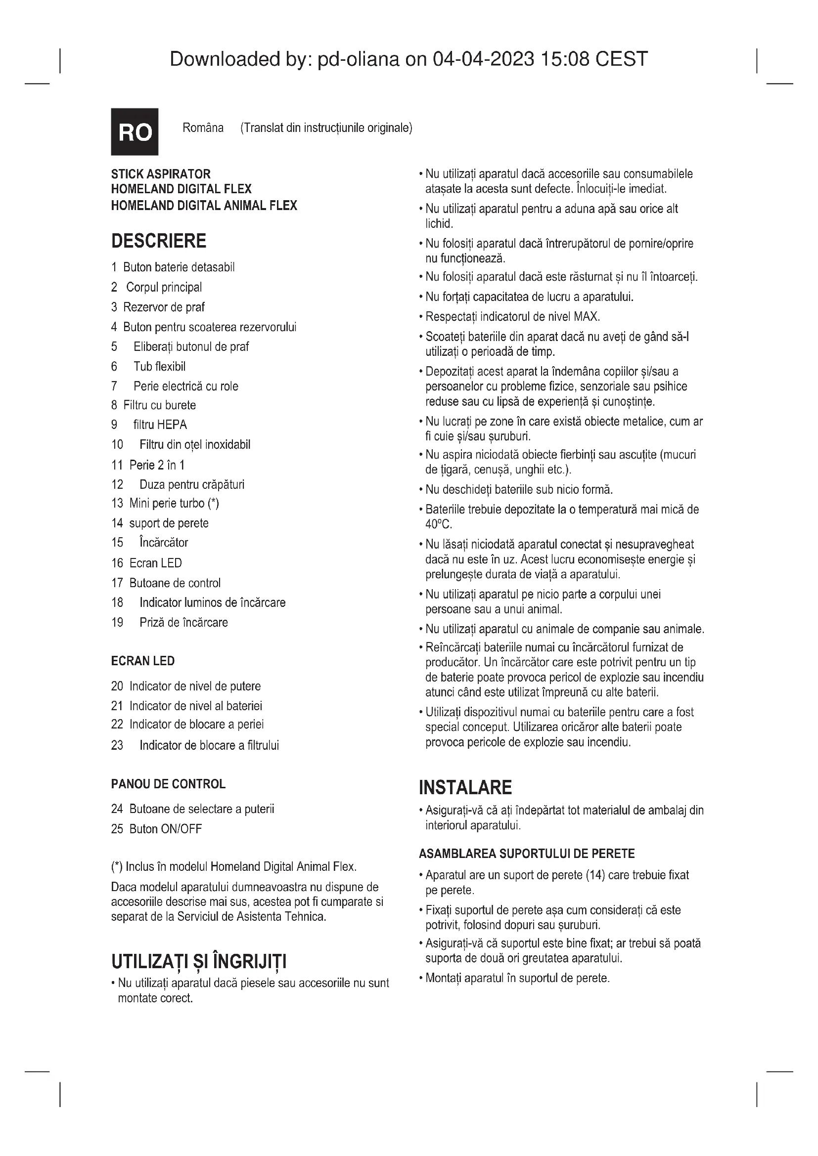 - Montațiaparatulînsuportuldeperete. Downloaded by: pd-oliana on 04-04-2023 15:08 CESTÎNCĂRCAREA BATERIEI