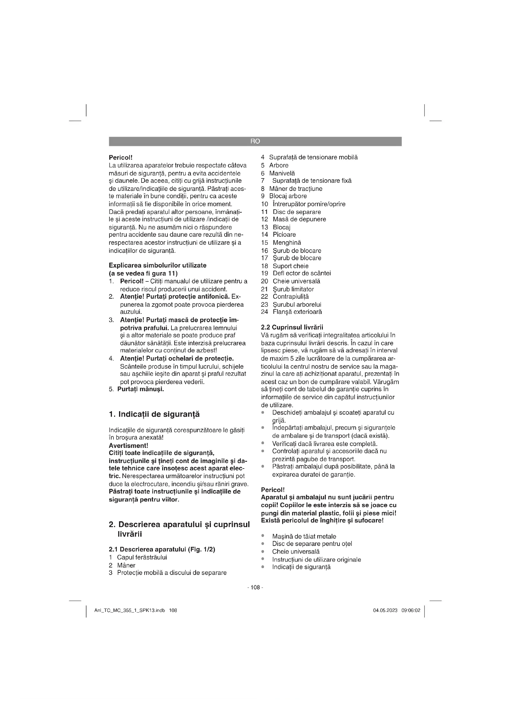 mână-braţ, în cazul utilizării timp mai înde- lungat a aparatului sau a utilizării şi întreţinerii sale necorespunzătoare. Anl_TC_MC_355_1_SPK13.indb 109Anl_TC_MC_355_1_SPK13.indb 109 04.05.2023 09:06:0204.05.2023 09:06:02RO