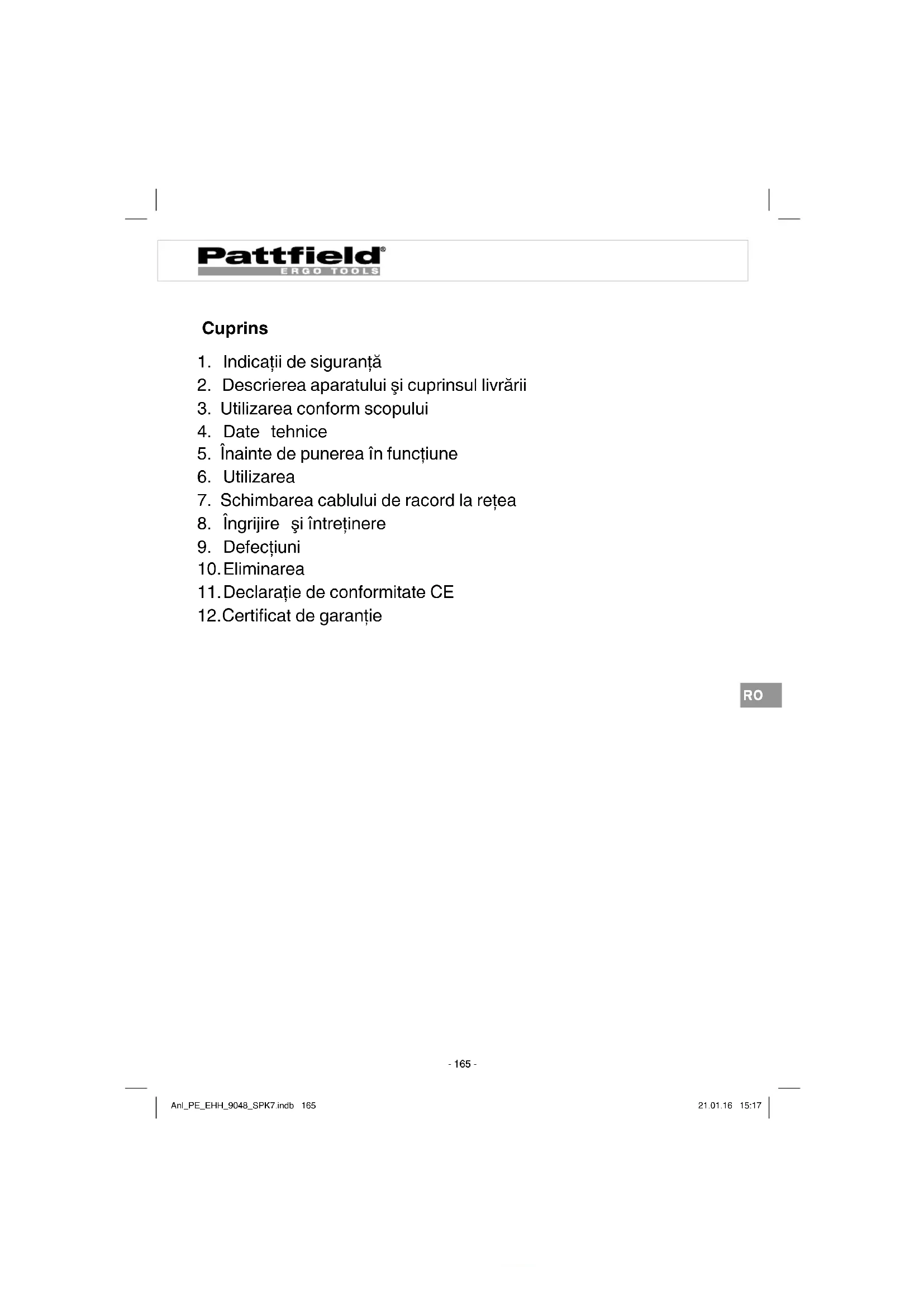 MANUAL DE UTILIZARE PEEHH 9048 Pattfield