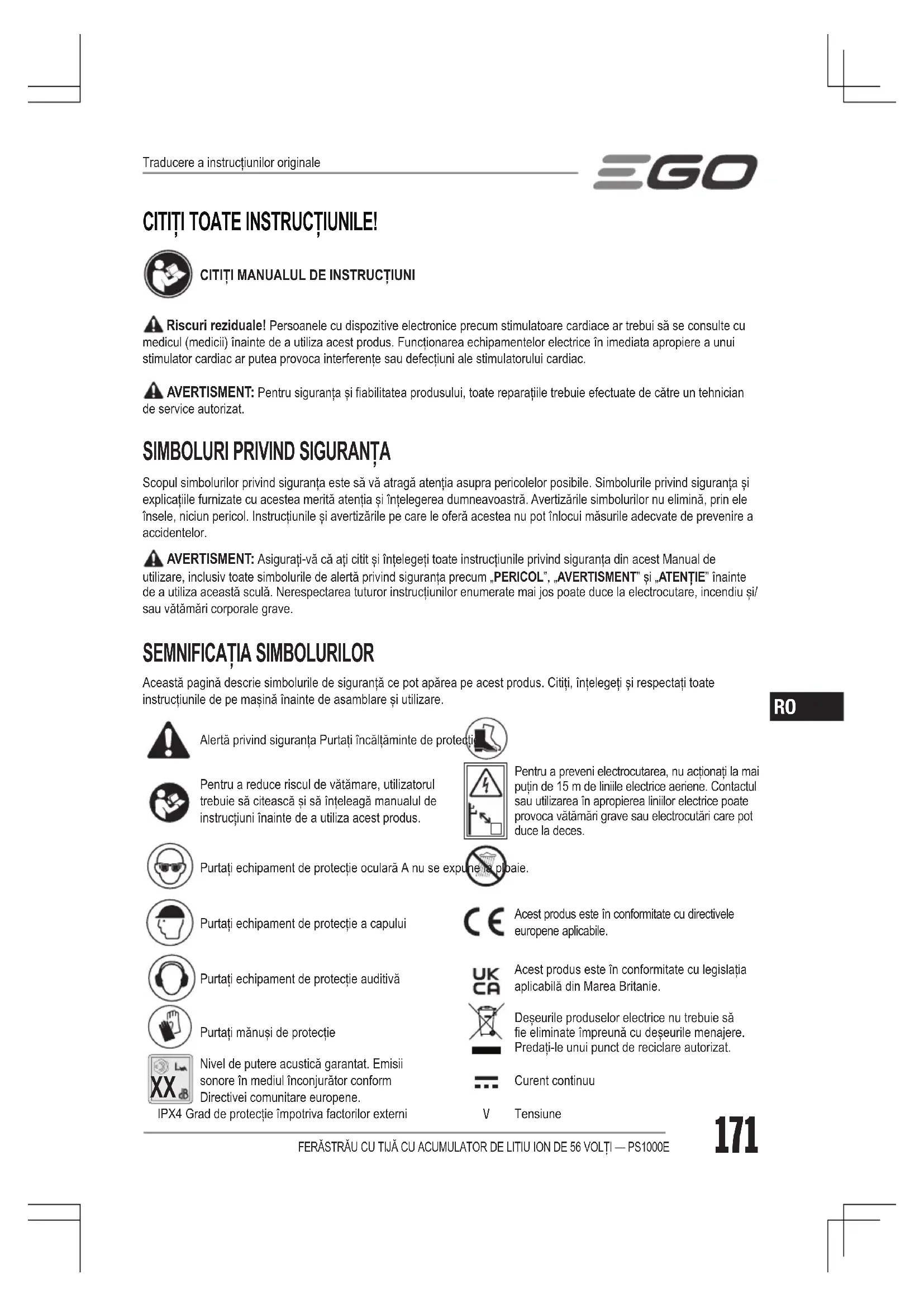 Găsiți gratuit manualul dispozitivului PS1003E EGO în format PDF.