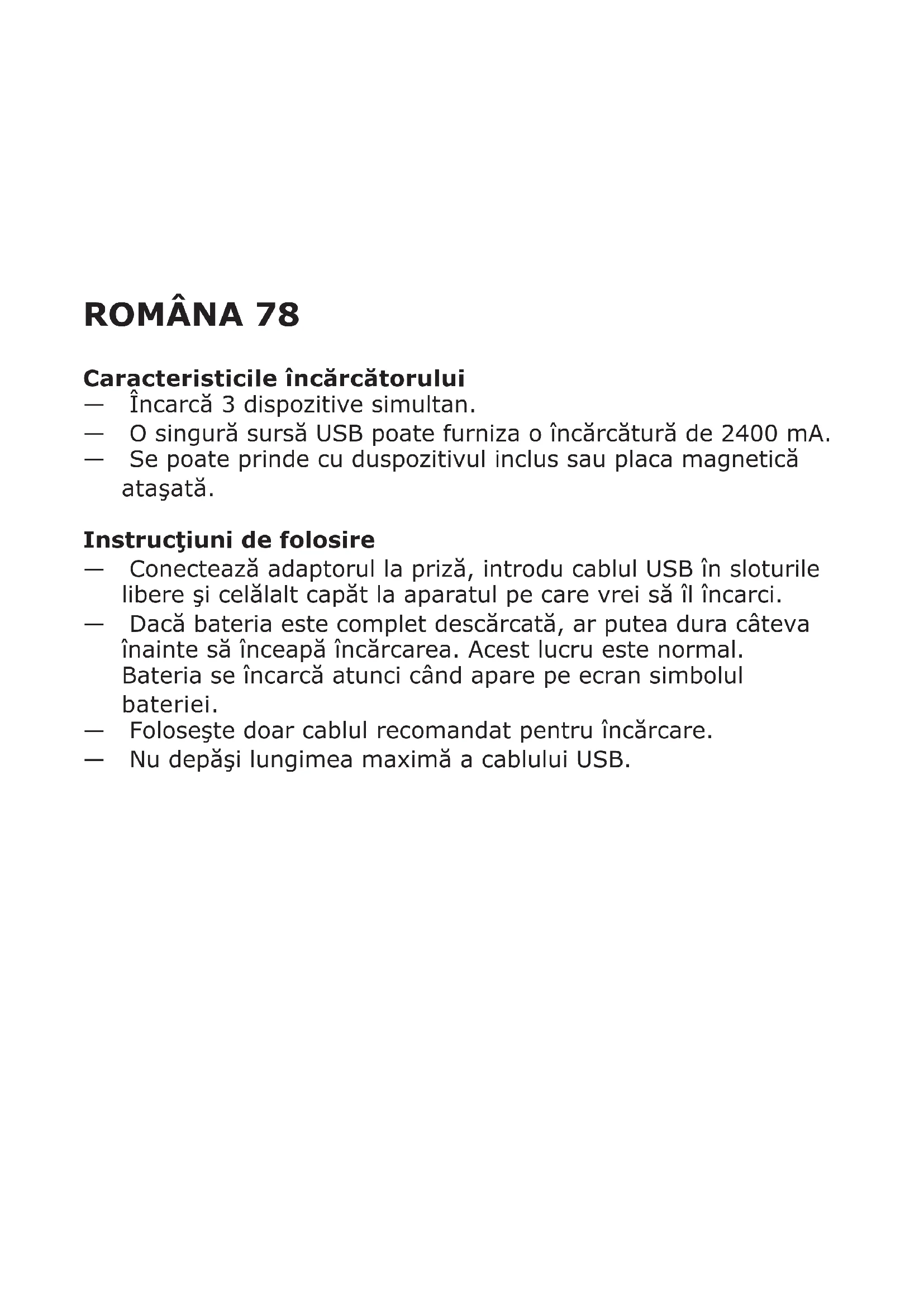 Tipo: E1605 LÖRBY Entrada: 24V DC Saída: 5V DC Usar apenas no interior Carga máx. total: 3400 mA Carga máx. por entrada USB: 2400 mA Comprimento máx. do cabo USB: 1.5 m/4'11" Fabricante: IKEA of Sweden AB Morada: Box 702, SE-343 81 Älmhult, SWEDEN O símbolo do caixote do lixo com o sinal de proibição indica que esse artigo deve ser separado dos resíduos domésticos convencionais. Deve ser entregue para reciclagem de acordo com as regulamentações ambientais locais para tratamento de resíduos. Ao separar um artigo assinalado dos resíduos domésticos, ajuda a reduzir o volume de resíduos enviados para os incineradores ou aterros, minimizando o potencial impacto negativo na saúde pública e no ambiente. Para mais informações, contacte a loja IKEA perto de si.ROMÂNA 78 Caracteristicile încărcătorului — Încarcă 3 dispozitive simultan. — O singură sursă USB poate furniza o încărcătură de 2400 mA. — Se poate prinde cu duspozitivul inclus sau placa magnetică ataşată. Instrucţiuni de folosire — Conectează adaptorul la priză, introdu cablul USB în sloturile libere şi celălalt capăt la aparatul pe care vrei să îl încarci. — Dacă bateria este complet descărcată, ar putea dura câteva înainte să înceapă încărcarea. Acest lucru este normal. Bateria se încarcă atunci când apare pe ecran simbolul bateriei. — Foloseşte doar cablul recomandat pentru încărcare. — Nu depăşi lungimea maximă a cablului USB.79 Bine de ştiut — Lungimea şi calitatea cablului USB inuenţează viteza de încărcare şi performanţa. — Dispozitivele se pot încălzi în timpul încărcării; acestea se vor răci după ce se încarcă complet. — Timpul de încărcare variazăîn funcţie de capacitatea bateriei, nivelul de încărcare şi temperatura înconjurătoare. — Temperatura de depozitare a încărcătorului: -20°C la 25°C. — Temperatura de operare a încărcătorului: 0°C la 40°C. Scoate încărcătorul din sursa de alimentare înainte de a îl curăţa. Şterge cu o cârpă umedă. Nu băga încărcătorul în apă. Pentru mai multe date tehnice, vezi pe spatele încărcătorului. Păstrează instrucţiunile.80 ATENŢIE: — Priza de perete trebuie să se ae lângă echipament şi să poată uşor accesată. — Foloseşte doar în medii uscate. — Copiii trebuie supravegheaţi pentru a nu se juca cu produsul. — În cazul în care cablul este deteriorat, aparatul trebuie aruncat. — Nu folosi niciodată un cablu USB avariat pentru că poate deteriora produsul. Service produs Nu încerca să repari produsul singur, deoarece deschiderea şi îndepărtarea capacului pot provoca accidente.81 DATE TEHNICE Tip: E1605 LÖRBY Alimentare: 24V DC Putere: 5V DC Se foloseşte doar la interior Încărcătură maximă totală: 3400 mA Încărcătură maximă per port USB: 2400 mA Lungimea maximă a cablului USB: 1.5 m/4'11" Producător: IKEA of Sweden AB Adresa: Box 702, SE-343 81 Älmhult, SUEDIA Simbolul indica faptul ca produsul trebuie sa e sortat separat de gunoiul menajer. Produsul respectiv trebuie sa e predat pentru reciclare in conformitate cu reglementarile locale cu privire la sortarea deșeurilor. Sortând în mod corect deșeurile, vei contribui la reducerea volumului de deșeuri ce urmeaza a arse sau trimise la groapa de gunoi și la minimizarea potenţialului impact negativ asupra oamenilor si mediului. Poţi aa mai multe informaţii la magazinul IKEA.SLOVENSKY 82 Vlastnosti nabíjačky — Nabíja naraz tri zariadenia. — Každý výstup USB môže poskytovať prúd až do 2400 mA. — Môžete pripevniť sponou, ktorá je súčasťou balenia alebo zabudovanou magnetickou doštičkou, či nálepkou alebo skrutkami. Návod na použitie — Pripojte elektrický adaptér do zásuvky, vložte káble postupne po jednom do voľných vstupov a druhý koniec do zariadenia, ktoré chcete nabiť. — Ak je vaša batéria úplne vybitá, môže chvíľu trvať, kým sa začne nabíjať. To je úplne normálne. Batéria sa začne nabíjať, keď sa na vašom zariadení objaví symbol pre nabíjanie. — Na nabíjanie používajte iba kábel USB odporúčaný pre vaše zariadenie. — Uistite sa, že dĺžka kábla nepresiahne odporúčanú dĺžku pre vaše zariadenie.83 Dobré vedieť — Dĺžka a kvalita kábla USA má vplyv na rýchlosť nabíjania a výkon. — Zariadenia sa počas nabíjania môžu zahrievať, je to úplne normálne. Potom, čo ich nabijete postupne vychladnú. — Čas nabíjania môže byť rôzny v závislosti od kapacity batérie, úrovne nabitia, veku batérie a teploty prostredia. — Teplota uskladnenia nabíjačky: -20° C do 25° C. — Teplota počas nabíjania: 0° C do 40° C. Odpojte nabíjačku zo zdroja, keď ju nepoužívate a počas čistenia. Nabíjačku očistíte vlhkou handričkou. Nikdy ju neponárajte do vody. Odporúčané preventívne opatrenia a technické dáta nájdete na zadnej strane nabíjačky. Tento návod si odložte pre ďalšie použitie.84 UPOZORNENIE: — Zásuvka v stene musí byť umiestnená v blízkosti zariadenia a musí byť ľahko dostupná. — Iba na použitie v suchých priestoroch. — Deti musia byť upozornené, aby sa s výrobkom nehrali. — Ak je kábel poškodený, prístroj musí byť zničený. — Na nabíjanie nikdy nepoužívajte poškodený alebo chybný kábel USB, pretože môže poškodiť prístroj a to môže poškodiť vaše zariadenie. Oprava výrobku Nepokúšajte sa výrobok opraviť sami, pretože pri otvorení alebo odstránení krytu hrozí nebezpečenstvo úrazu elektrickým prúdom alebo iné nebezpečenstvo.85