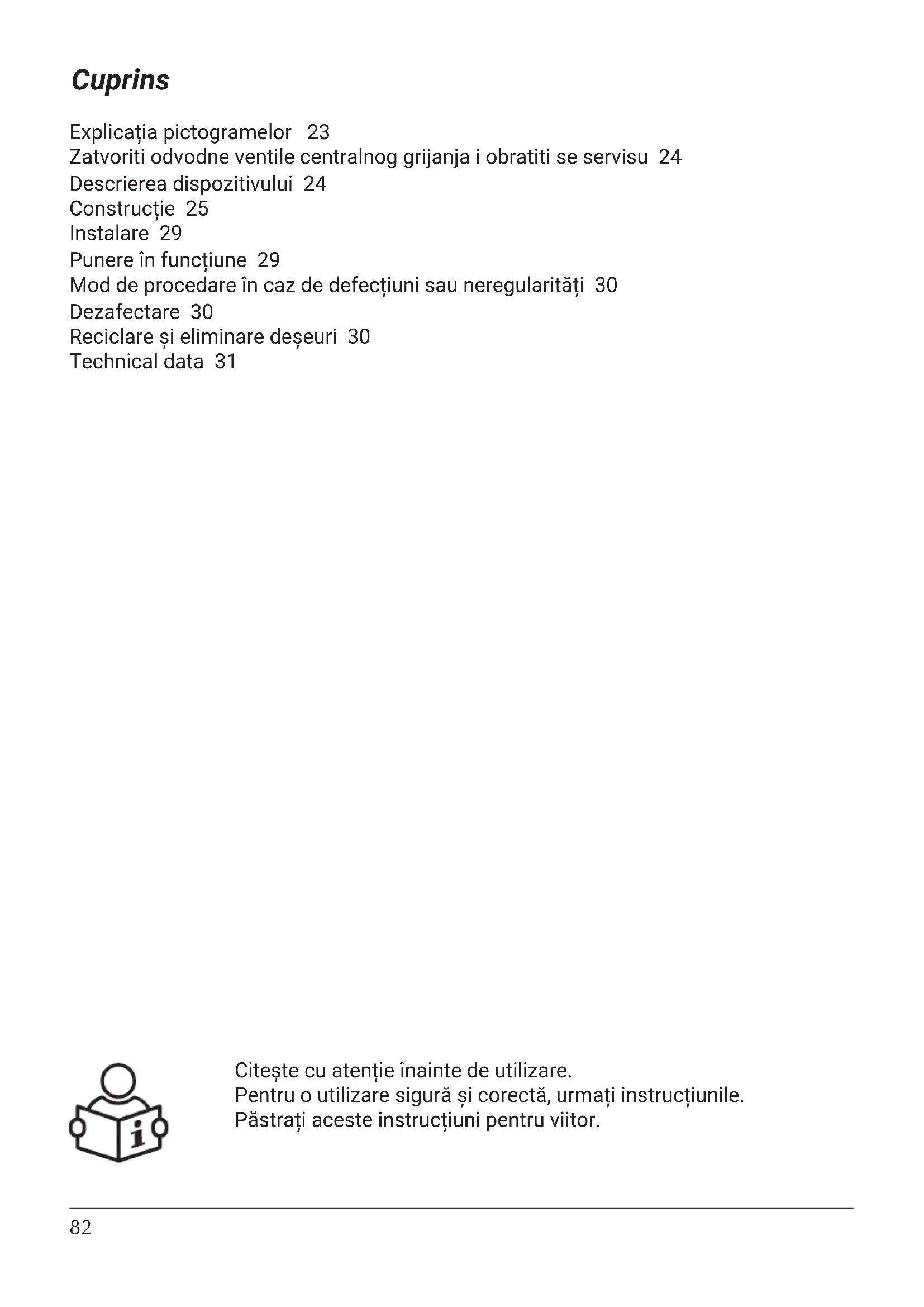 familiarizarea cu conținutul acestui manual de utilizare va permite o instalare corectă și o exploatare a dispozitivului, asigurându-i o funcționare de lungă durată și fiabilă,