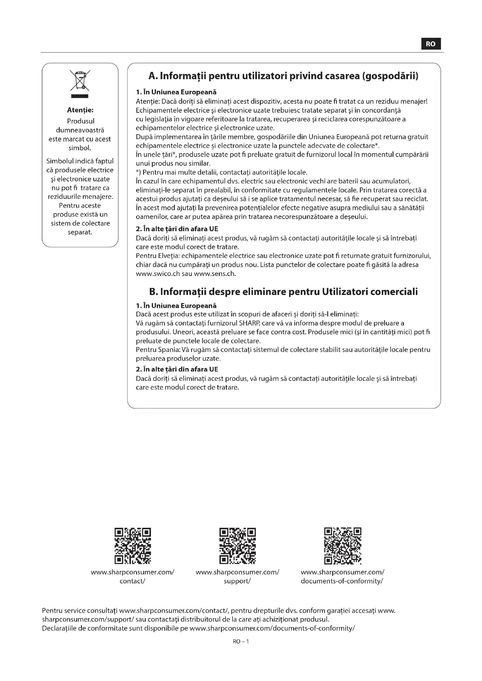 RO – 1 RO – 1 A. Informații pentru utilizatori privind casarea (gospodării)