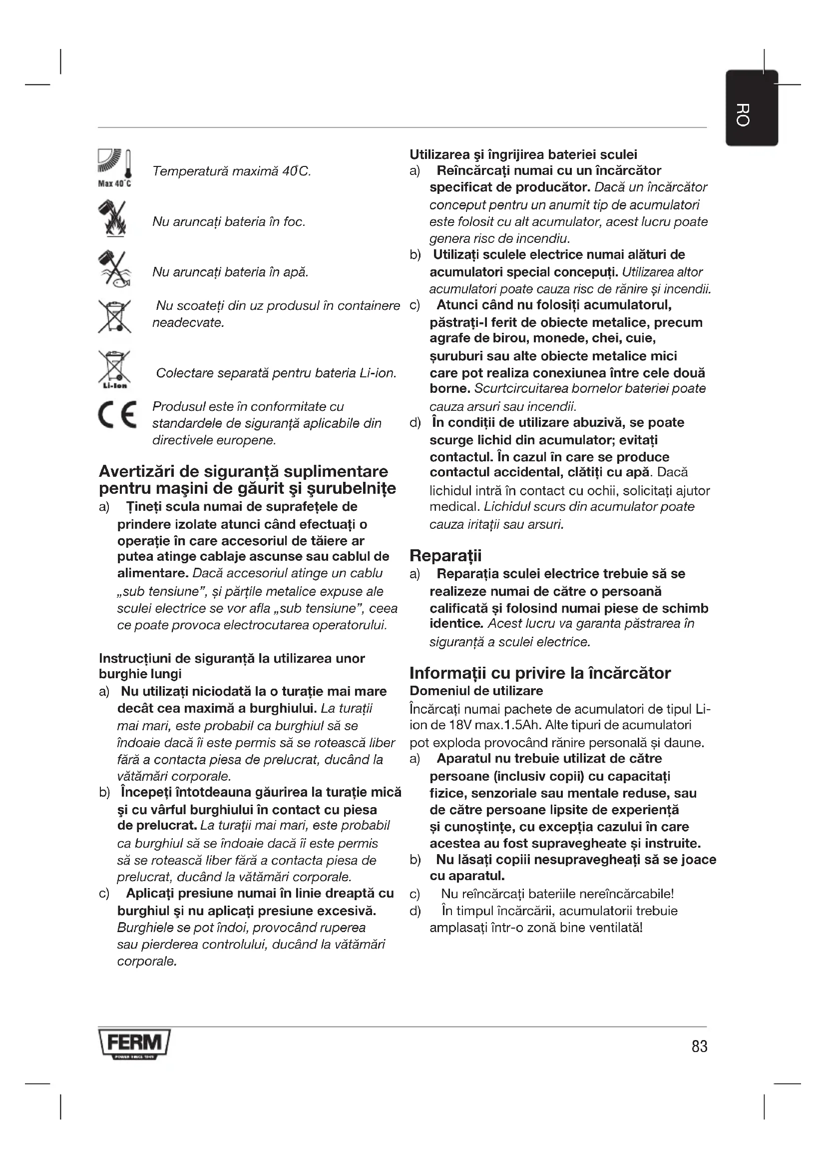 acumulator Li-Ion de 18V CDM1120 Vămulţumimcăaţiachiziţionatacestprodus Ferm.Procedândastfel,aveţiacumunprodus excelent,livratdeunuldinceimaiimportanţi furnizori din Europe. Toate produsele livrate de Ferm sunt fabricate respectând cele mai înalte standardedeperformanţăşisiguranţă.