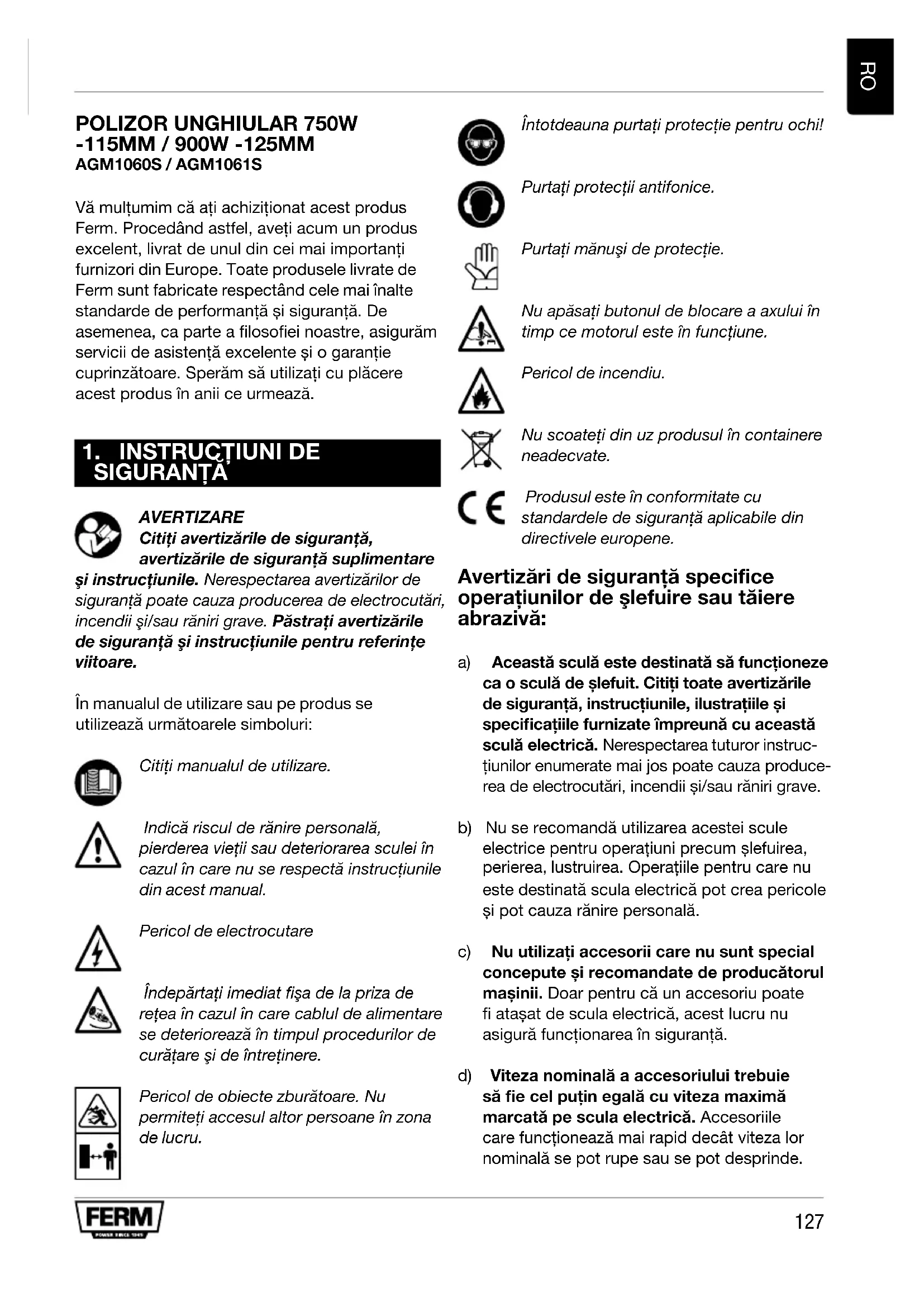 MANUAL DE UTILIZARE AGM1060S Ferm