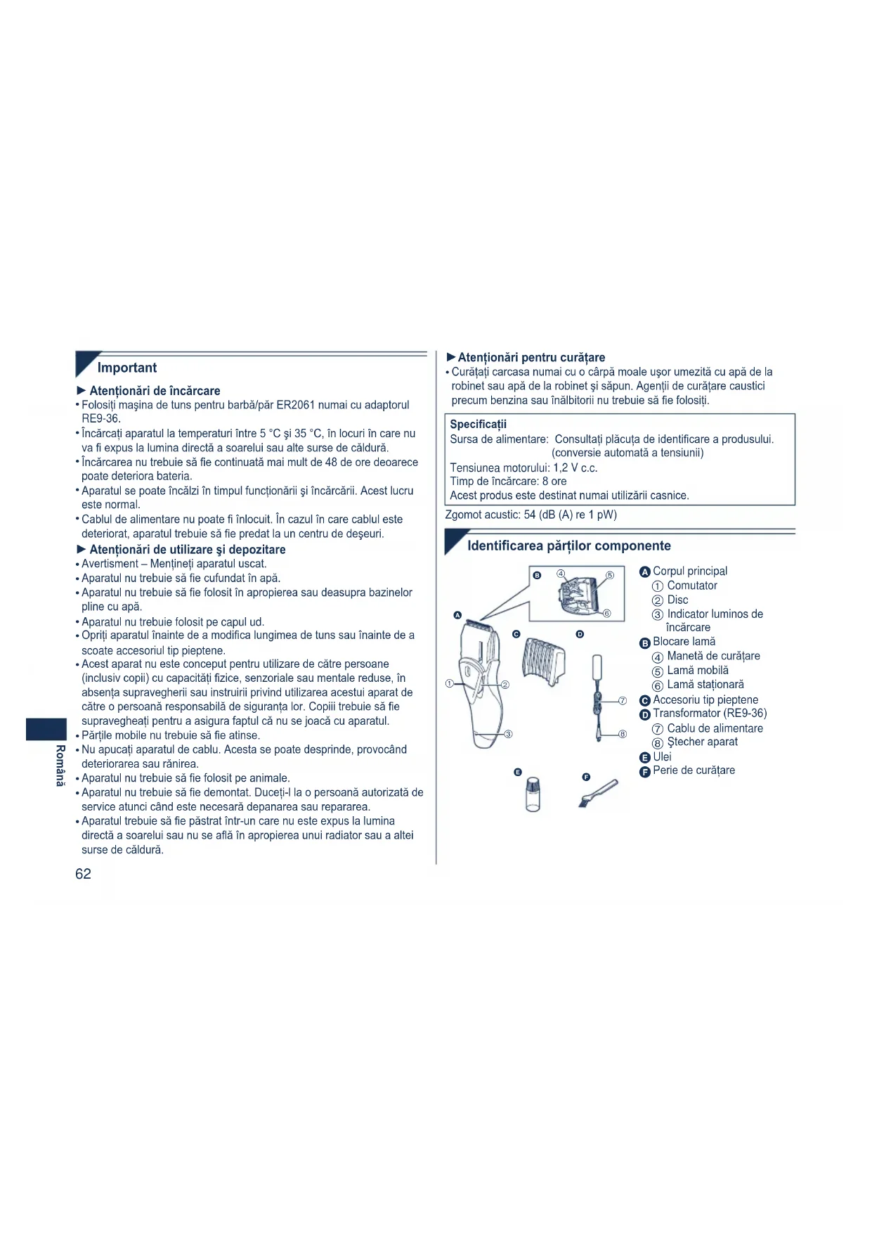 MANUAL DE UTILIZARE ER2061 PANASONIC