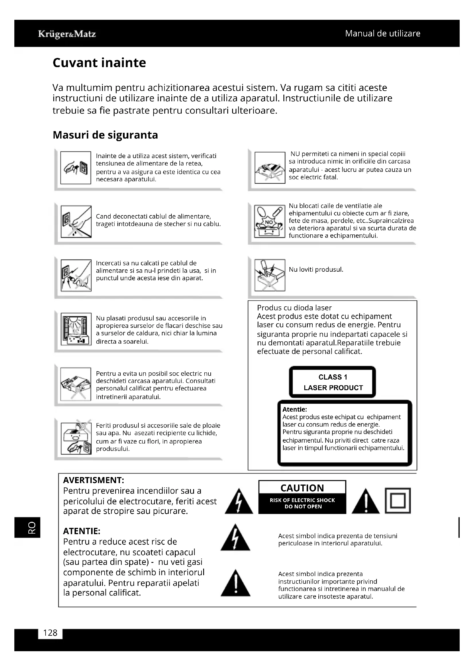 Va multumim pentru achizitionarea acestui sistem. Va rugam sa cititi aciste instrutiuni de utilizare inainte de a utiliza aparatul. Instructiunile de utilizare trebuie sa fie pastrate pentru consultari ulterioare.