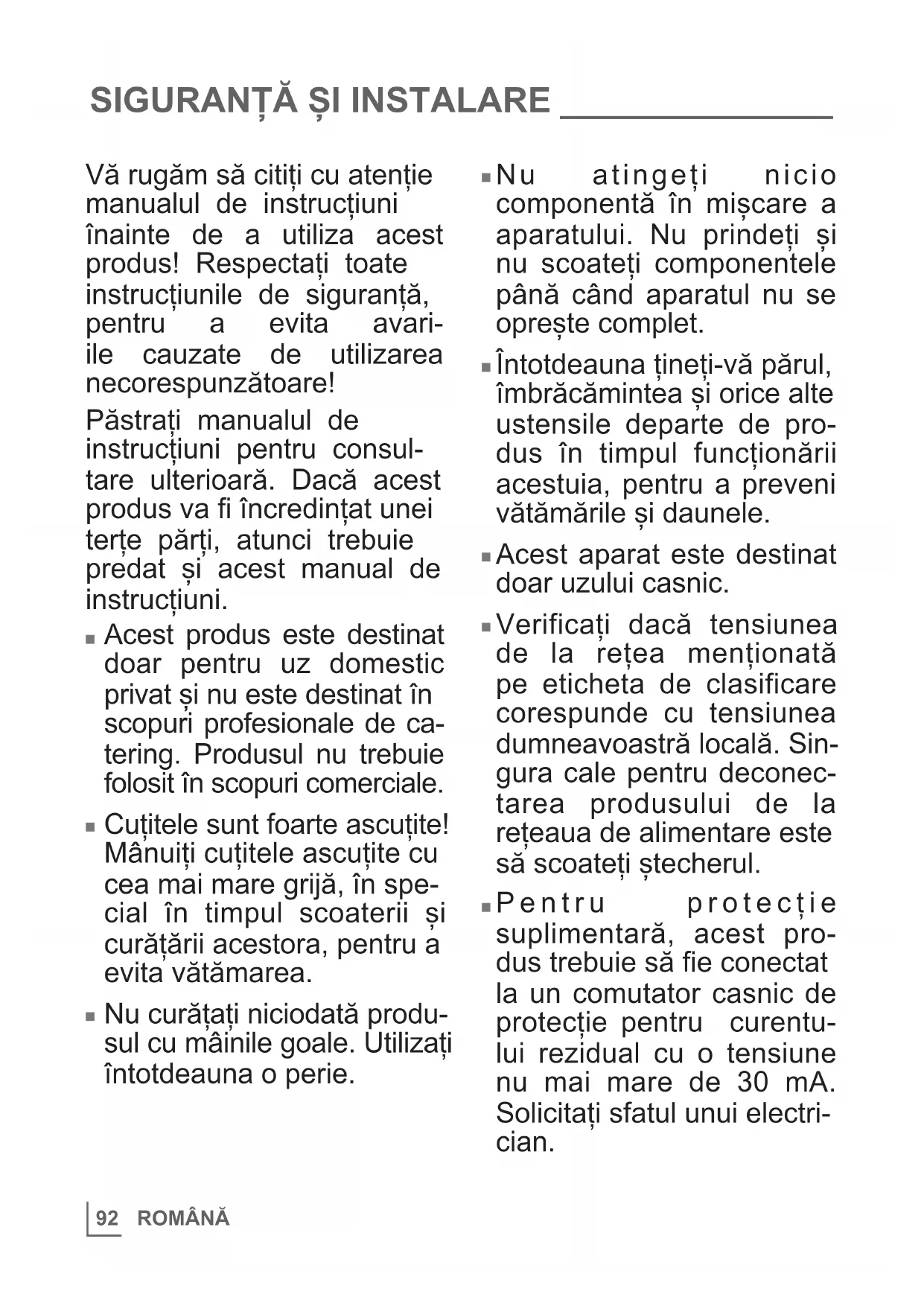 Întotdeauna țineți-vă părul, îmbrăcămintea și orice alte ustensile departe de pro- dus în timpul funcționării acestuia, pentru a preveni vătămările și daunele.