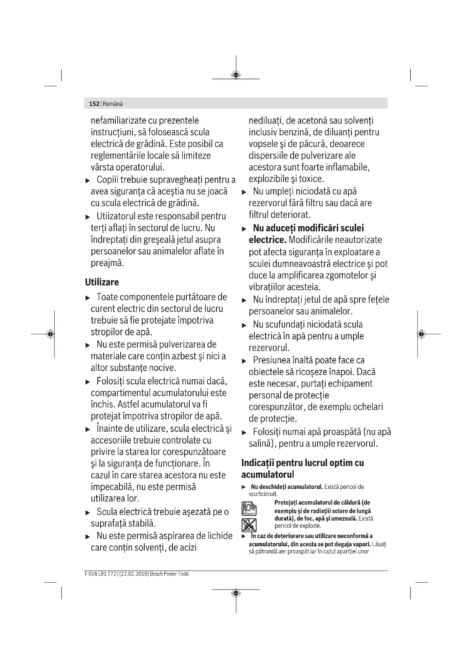 - Folosi acumulatorul numai impreună cu produsul dumneavoastr Bosch. Numai astfel acumulatorul va fi protejat impotriva unei suprasolicitari periculoase.