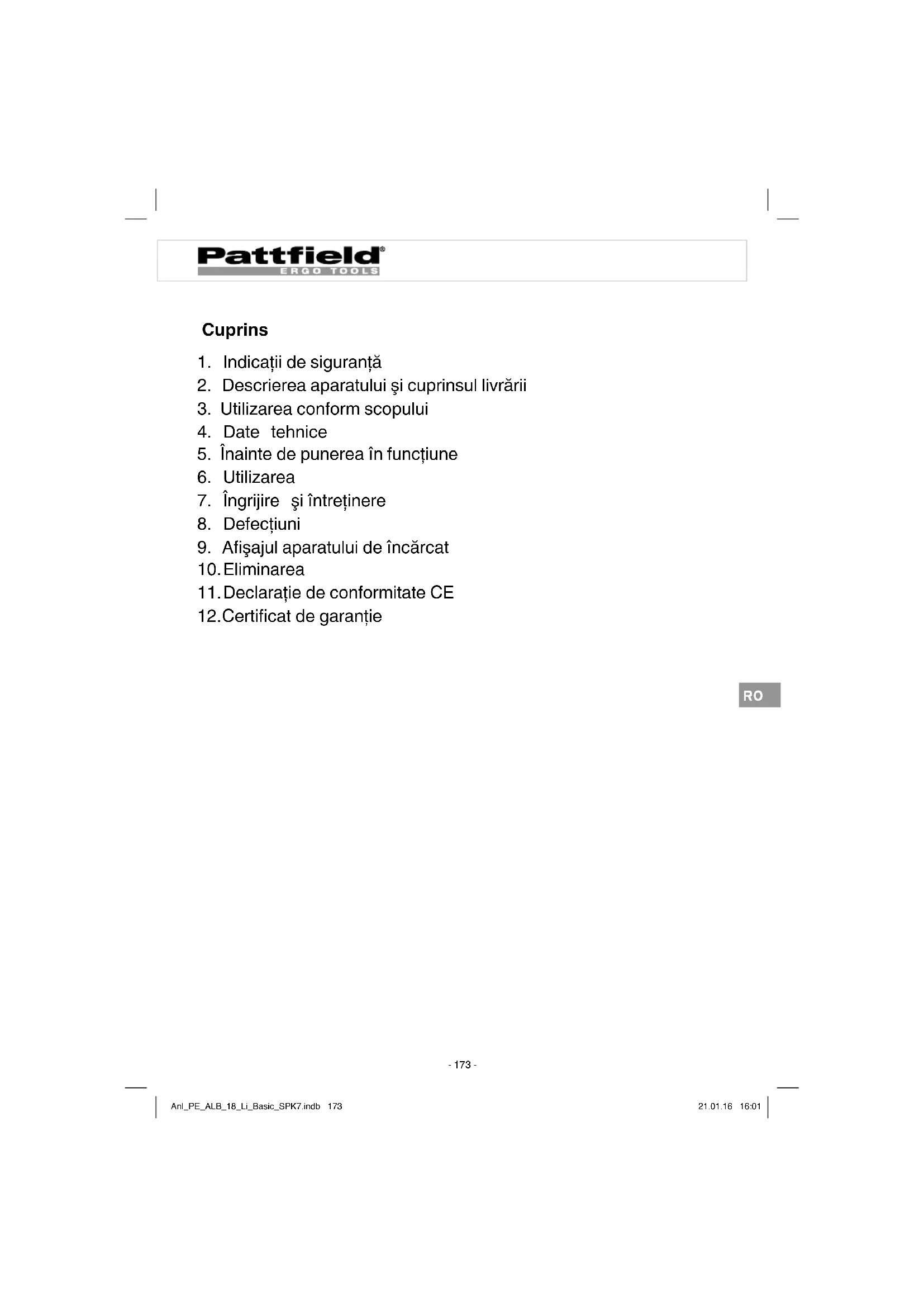 MANUAL DE UTILIZARE PEALB 18 Li Basic Pattfield