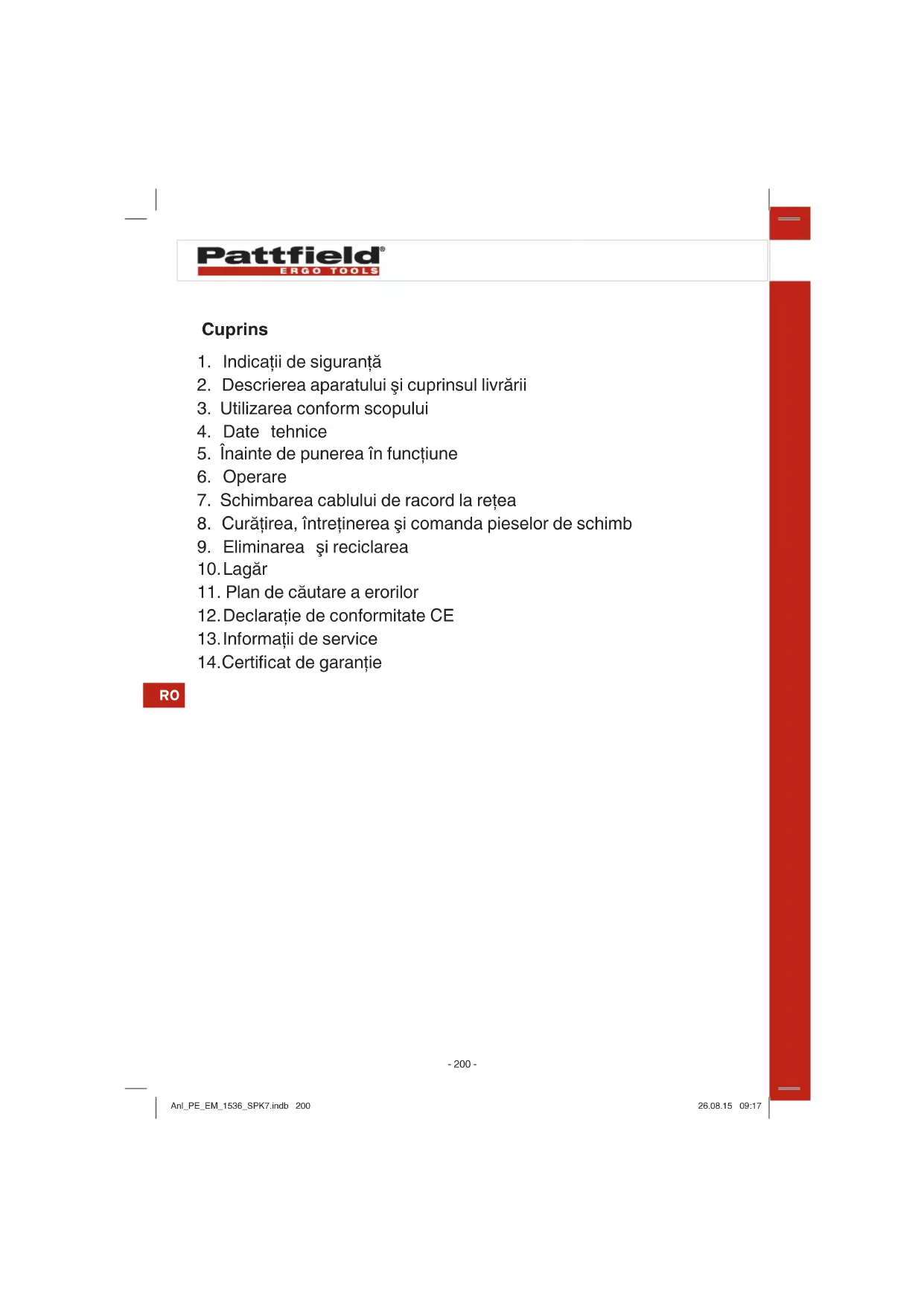 MANUAL DE UTILIZARE PEEM 1536 Pattfield