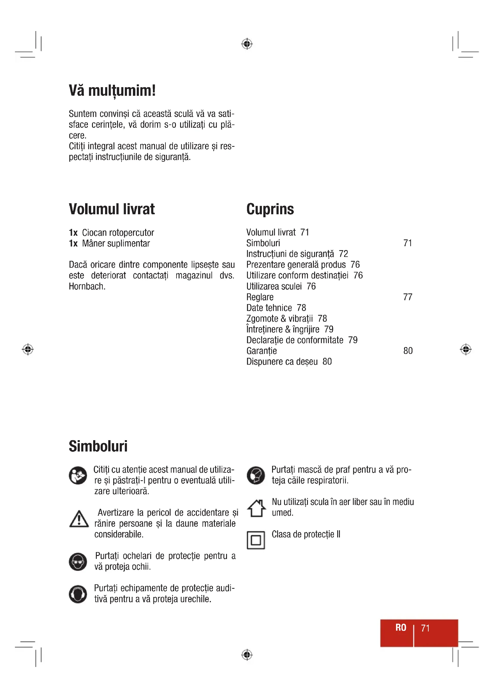 | Instrucțiuni de siguranță 72 | |