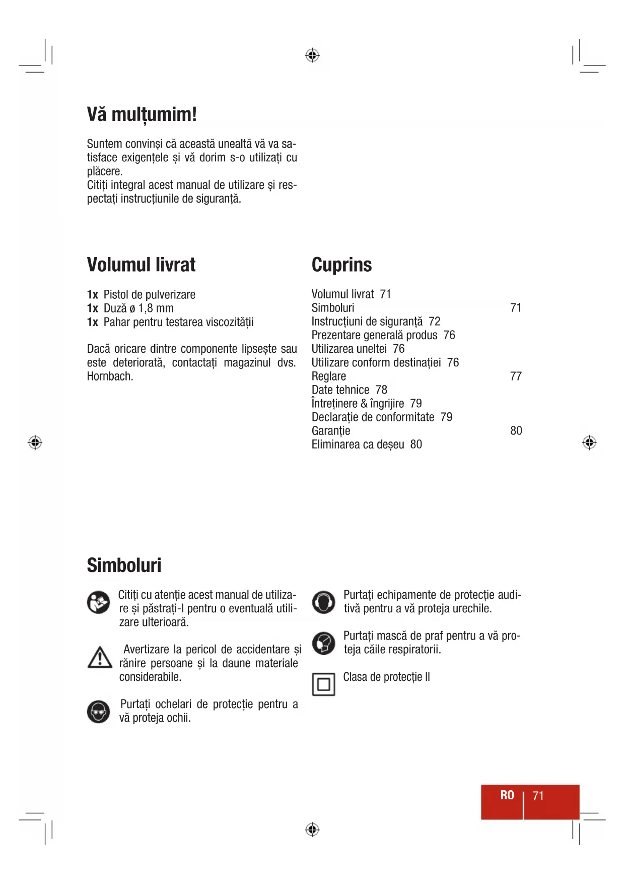 AVERTIZÄRIDE SIGURANTA SPECIFICE UTILAJULUI PENTRU PISTOALE DE PULVERIZARE