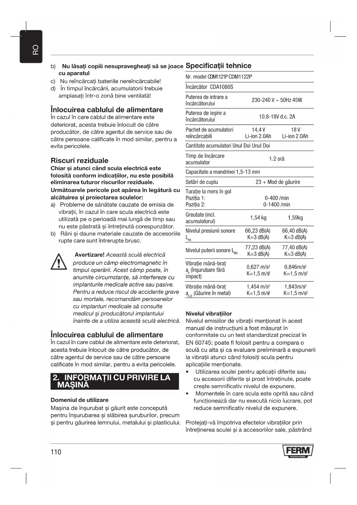 MANUAL DE UTILIZARE CDM1121P Ferm
