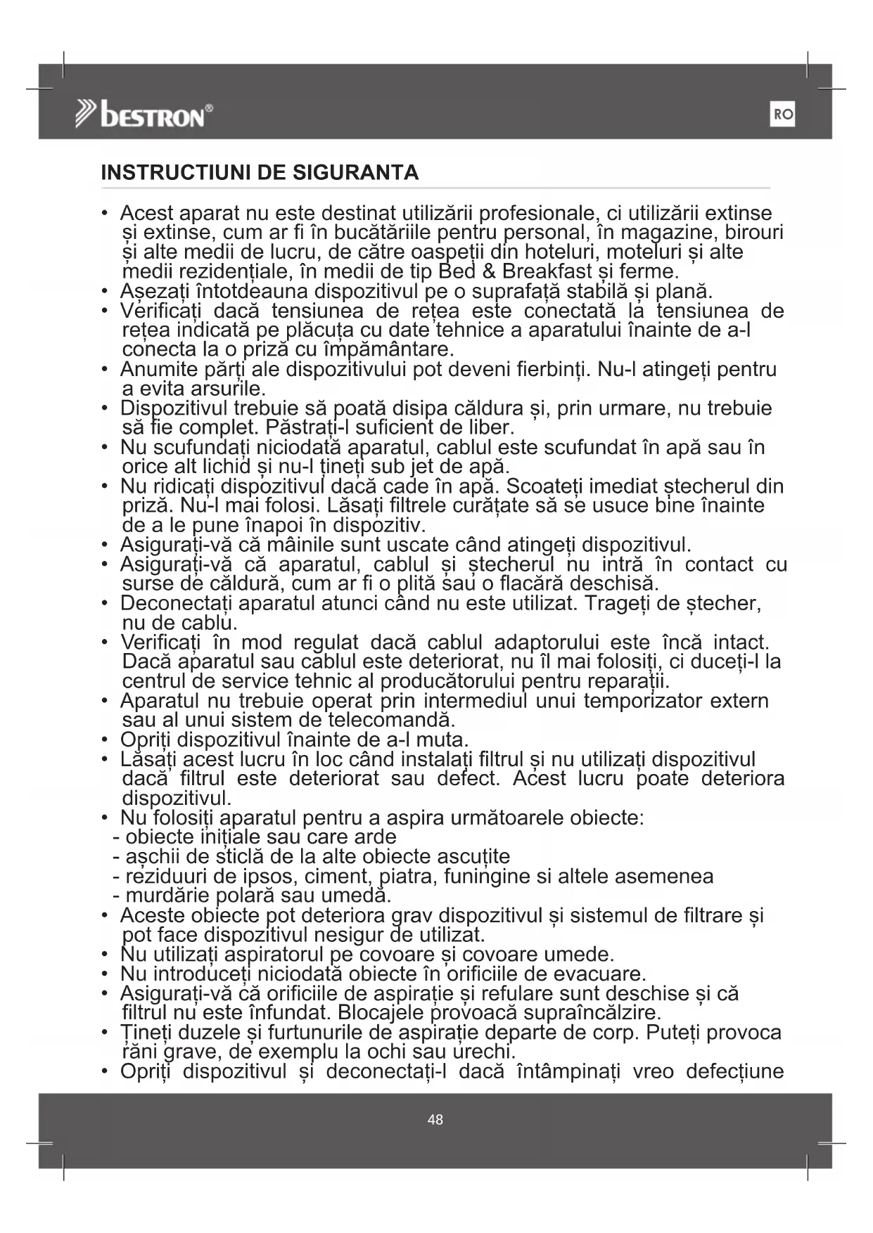 - Aceste obiecte pot deteriorora grav dispositivul si sistemul de filtrare si pot face dispositivul nesigur deutilizat.