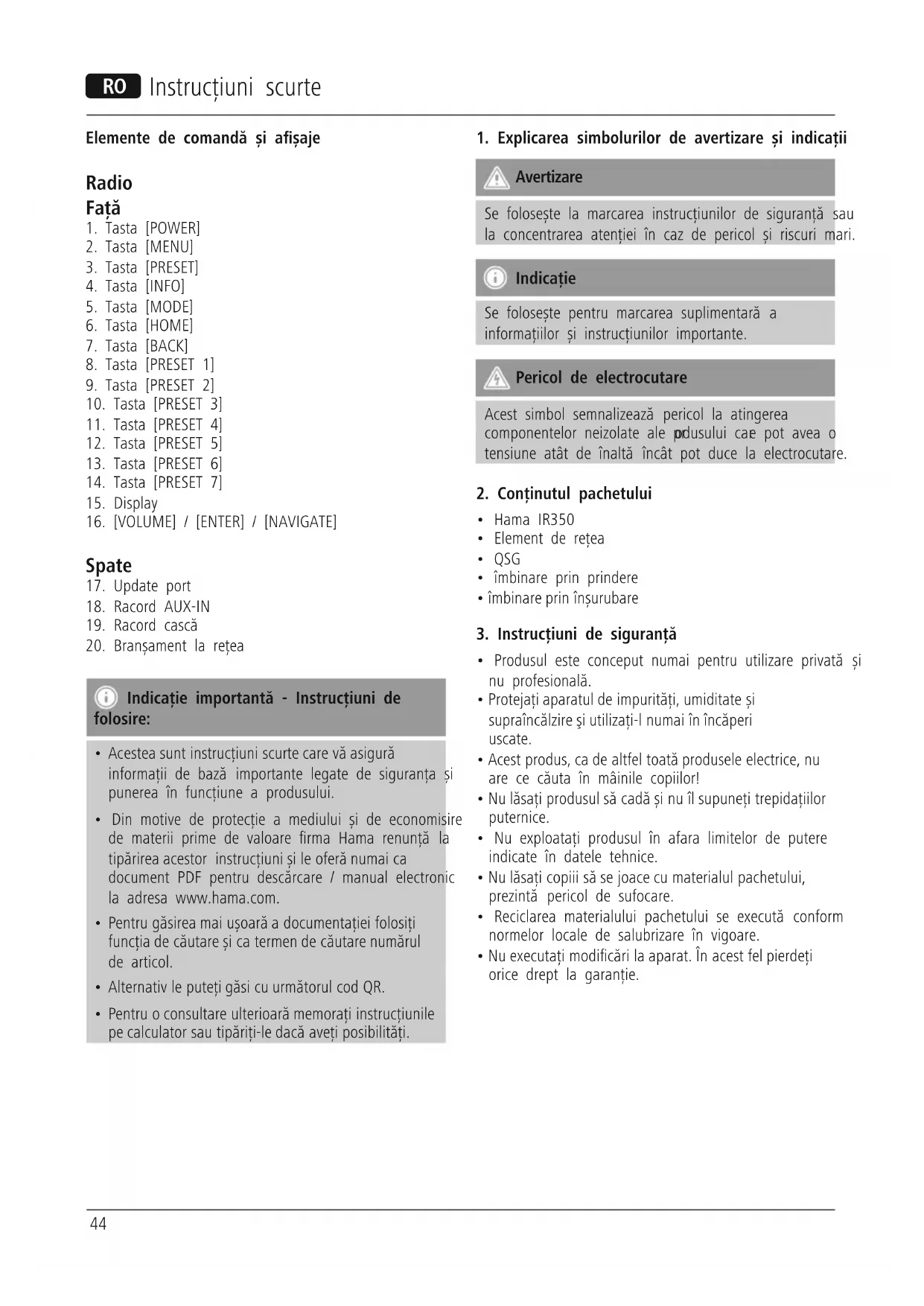 IR350M - Radio HAMA - Manual de utilizare gratuit