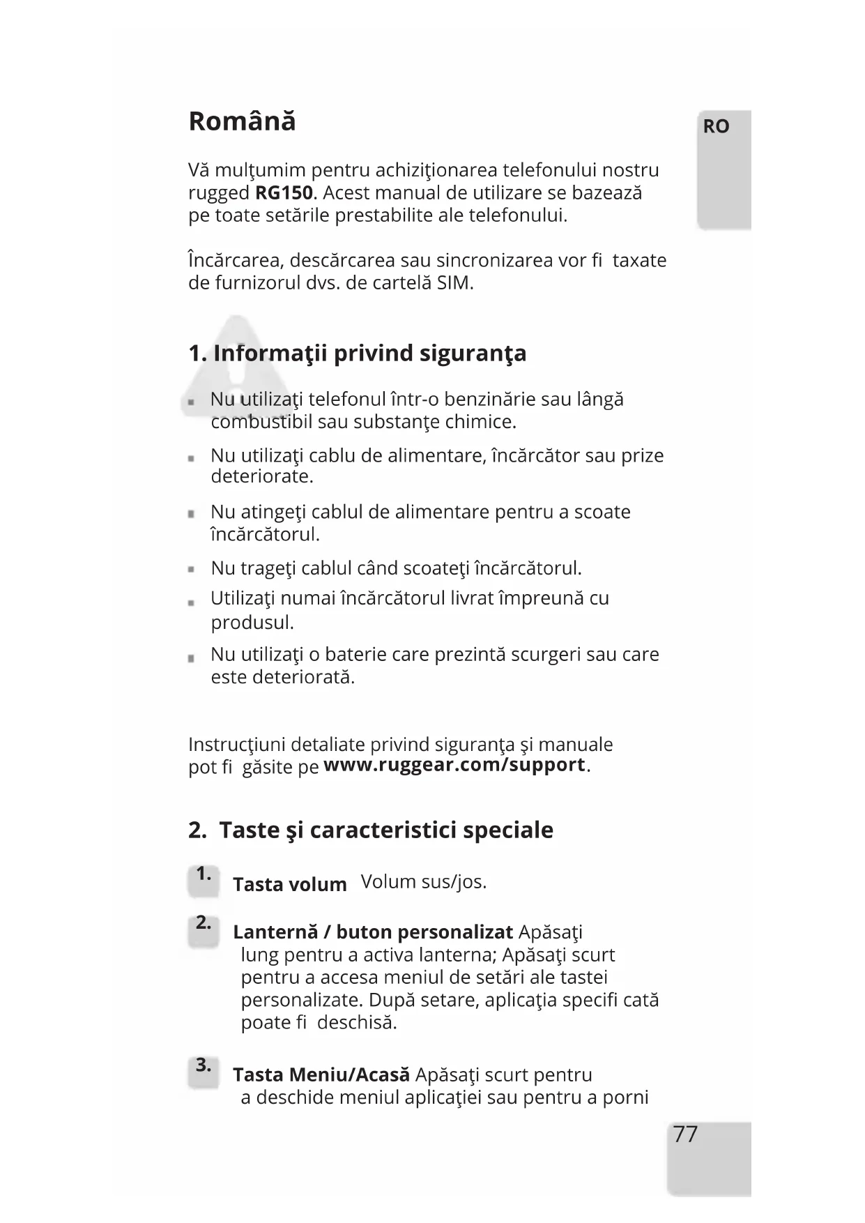 MANUAL DE UTILIZARE RG150 RugGear