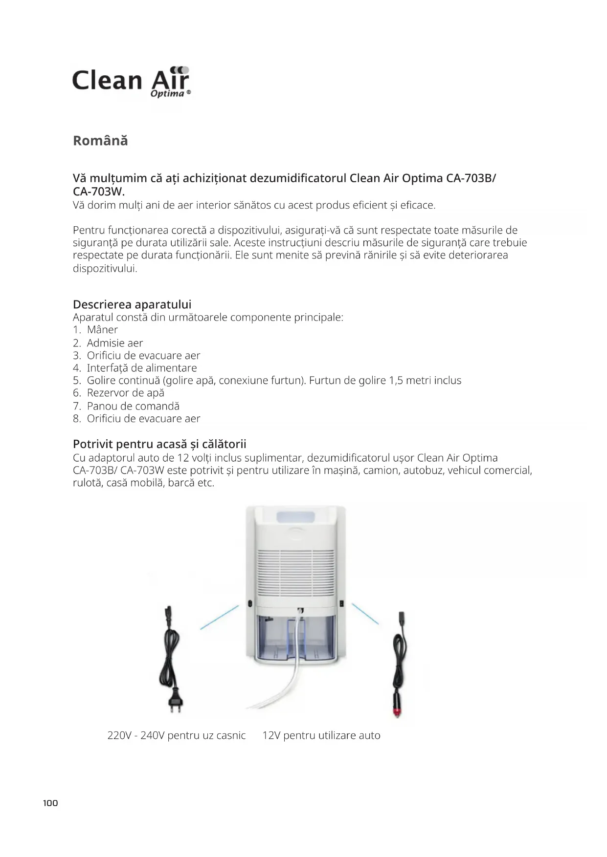 Vă multțumim ca ați achizitionatdezumidificatorul Clean Air Optima CA-703B/ CA-703W.