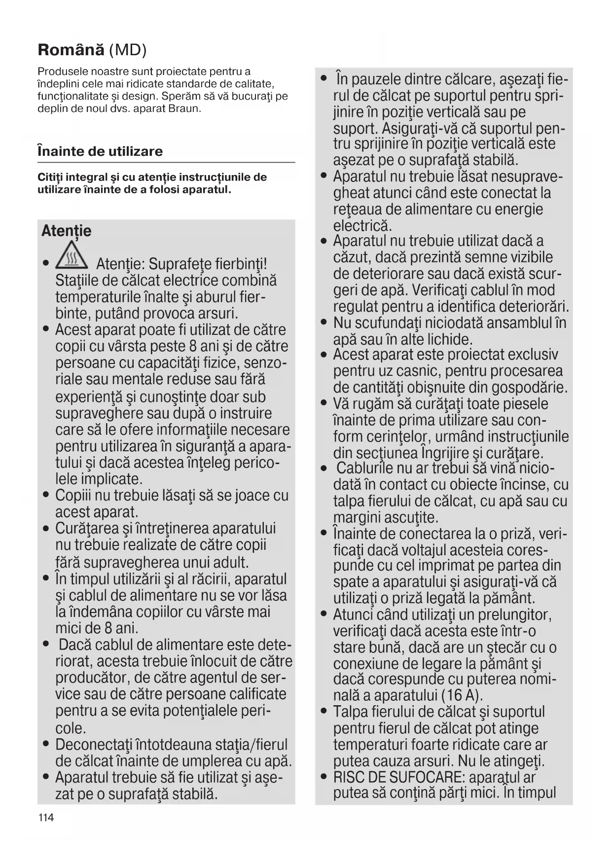 Atenţie: Suprafeţe fierbinţi! Staţiile de călcat electrice combină temperaturile înalte şi aburul fier- binte, putând provoca arsuri.