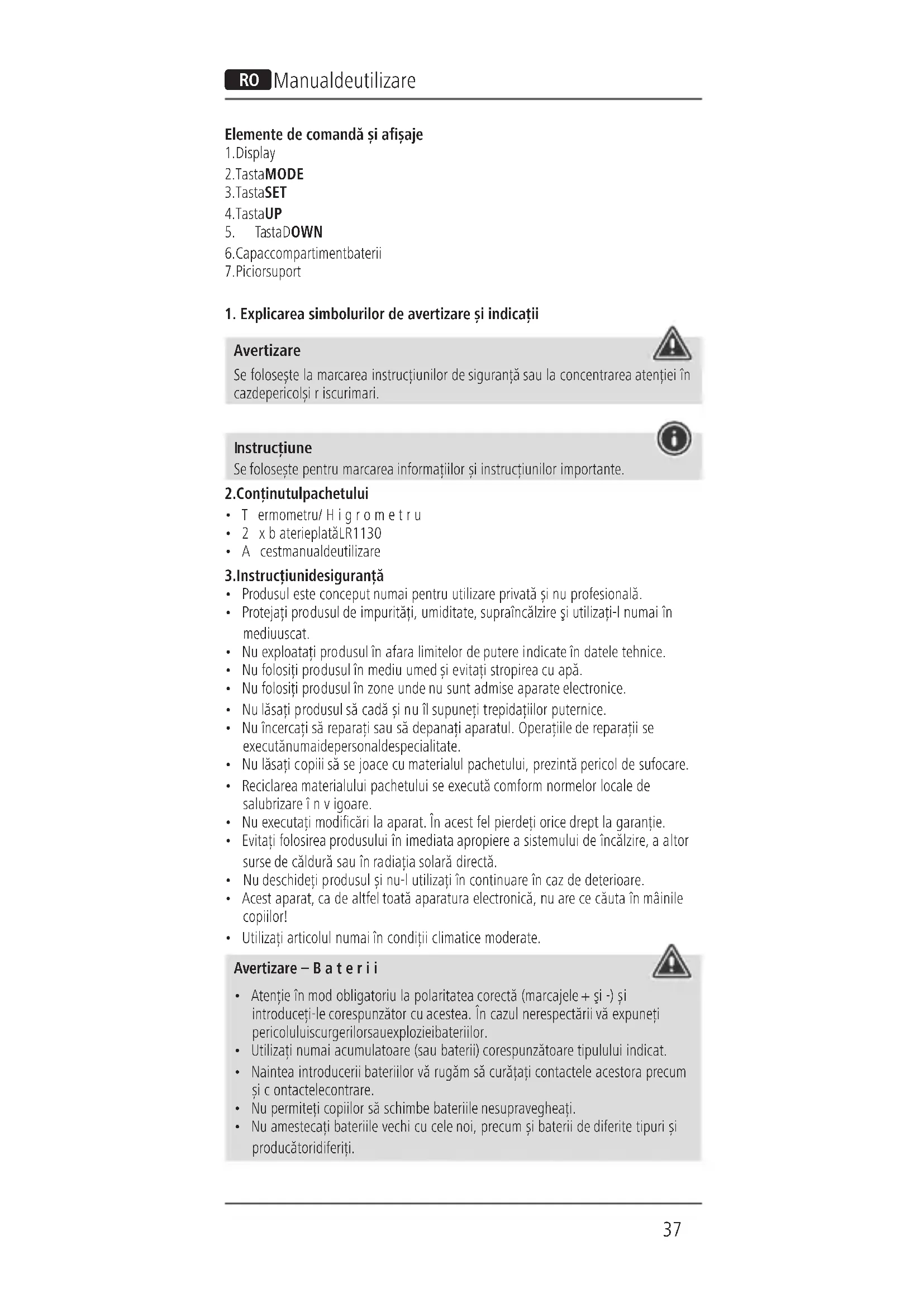 - Utilizațiarticolul numai în condiții climatice moderate. Avertizare–Baterii