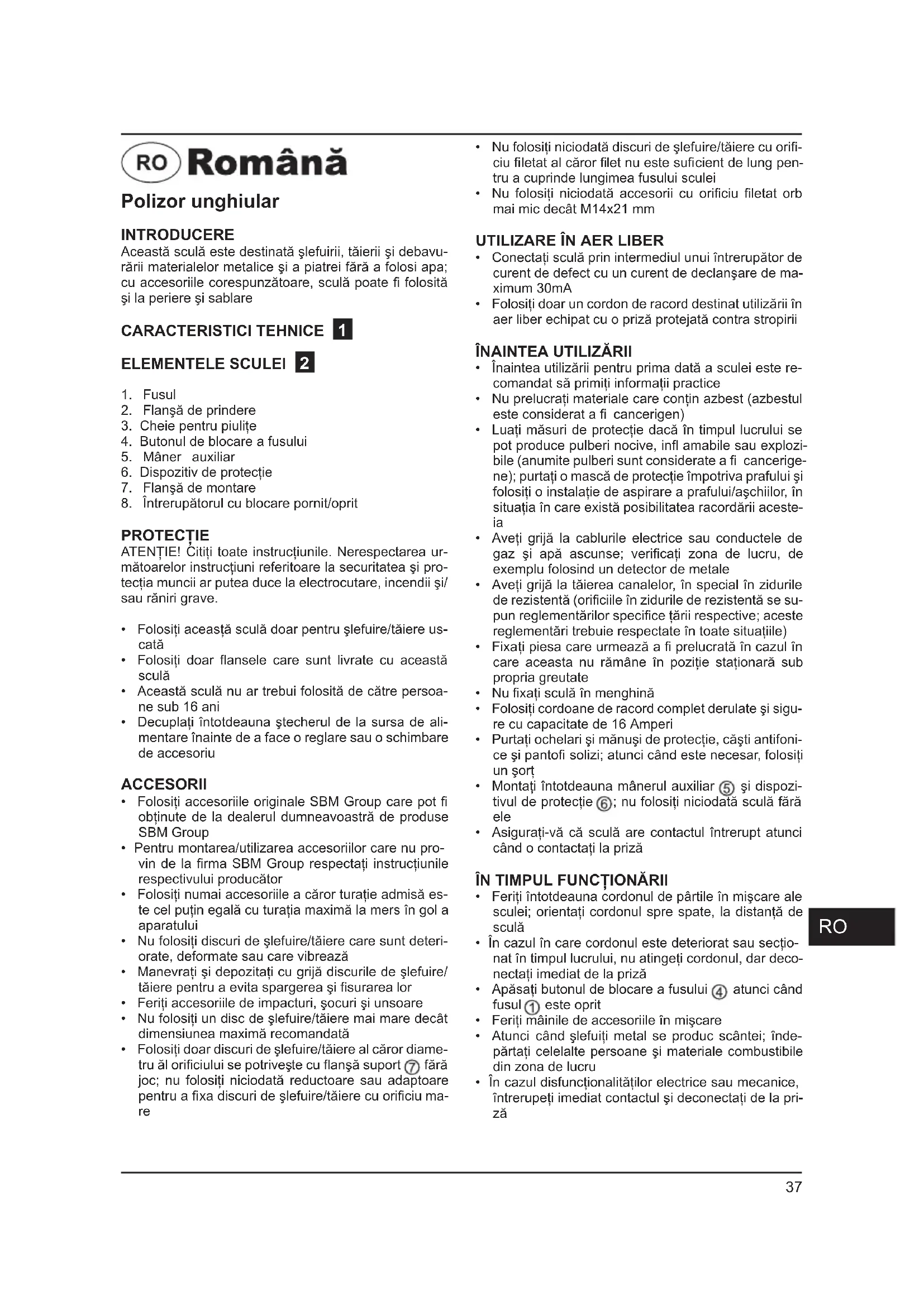 - Folositi accesoriiile originale SBM Group care pot fi obținute de la dealerul dumneavoastră de produse SBM Group