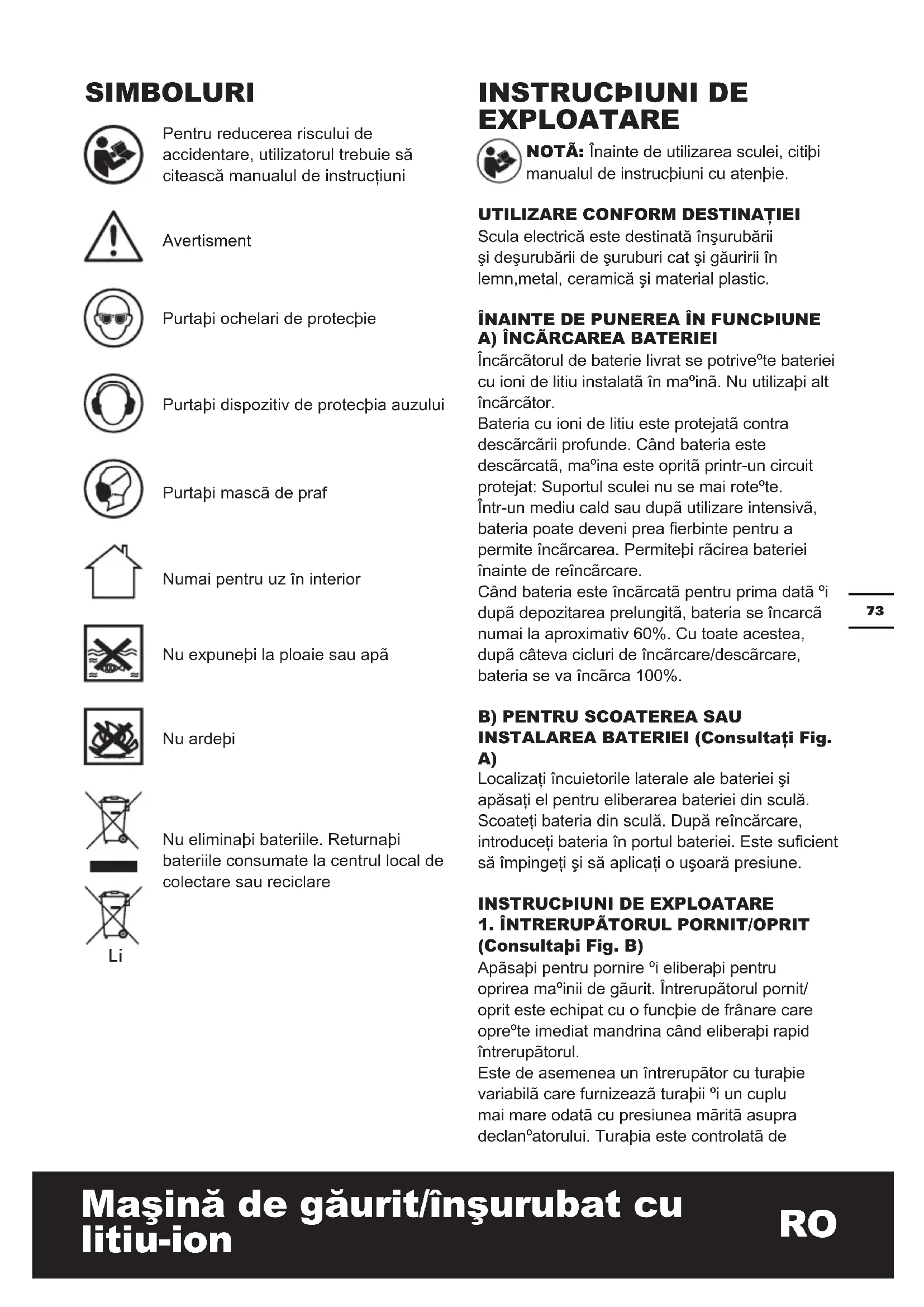 EXPLOAtARE Înainte de utilizarea sculei, citiþi manualul de instrucþiuni cu atenþie.