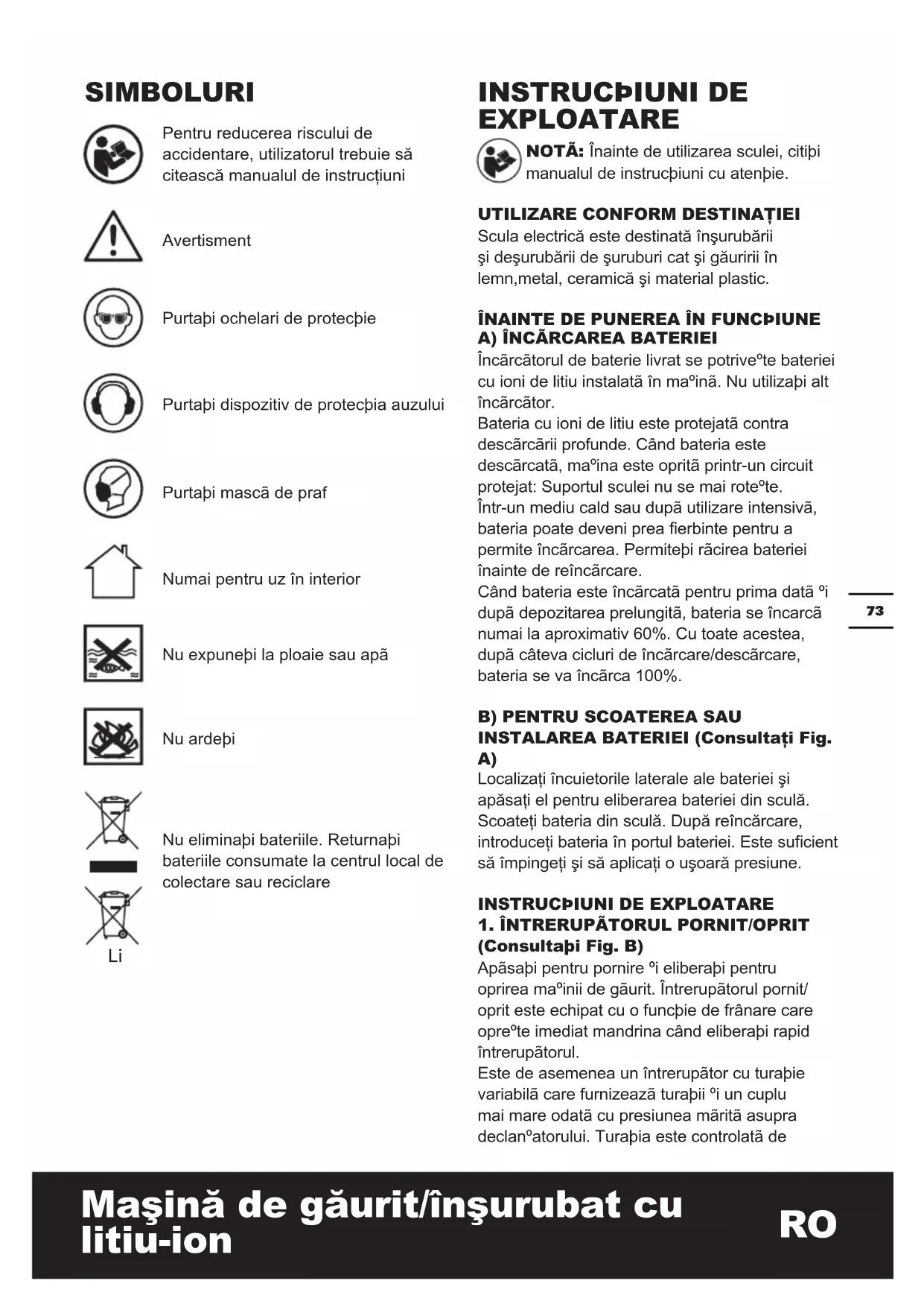 EXPLOAtARE Înainte de utilizarea sculei, citiþi manualul de instrucþiuni cu atenþie.