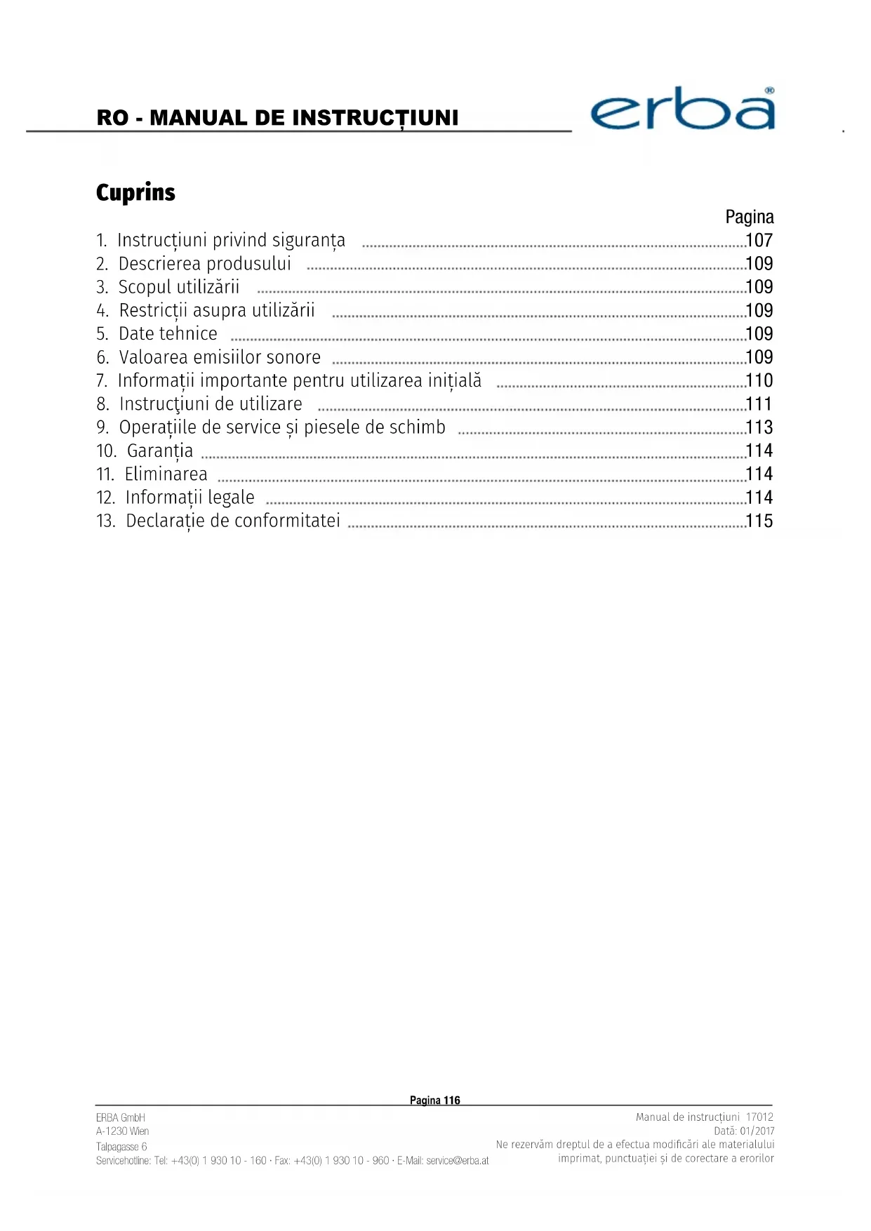 MANUAL DE UTILIZARE 17012 Erba
