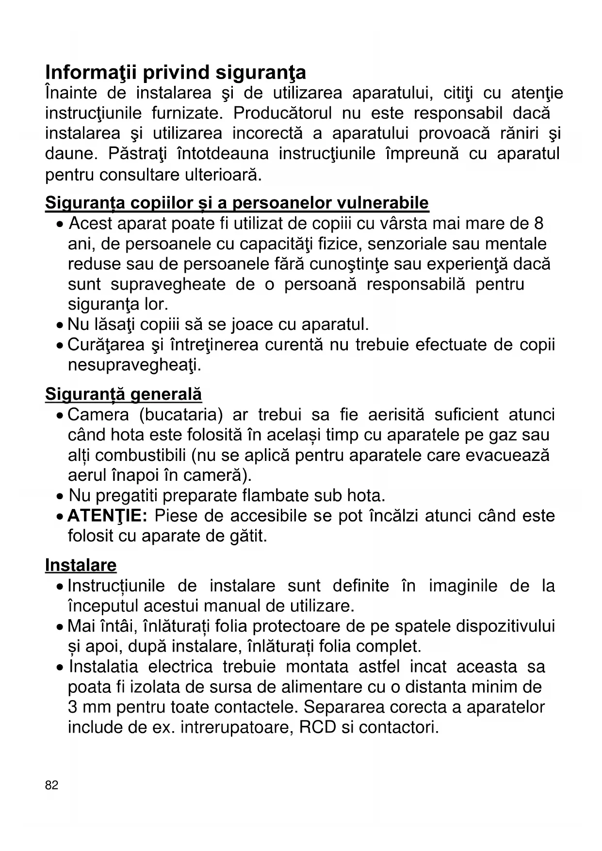 - Acest aparat poate fi utilizat de copiii cu vârsta mai mare de 8 ani, de persoanele cu capacităţi fizice, senzoriale sau mentale reduse sau de persoanele fără cunoştinţe sau experienţă dacă sunt supravegheate de o persoană responsabilă pentru siguranţa lor.