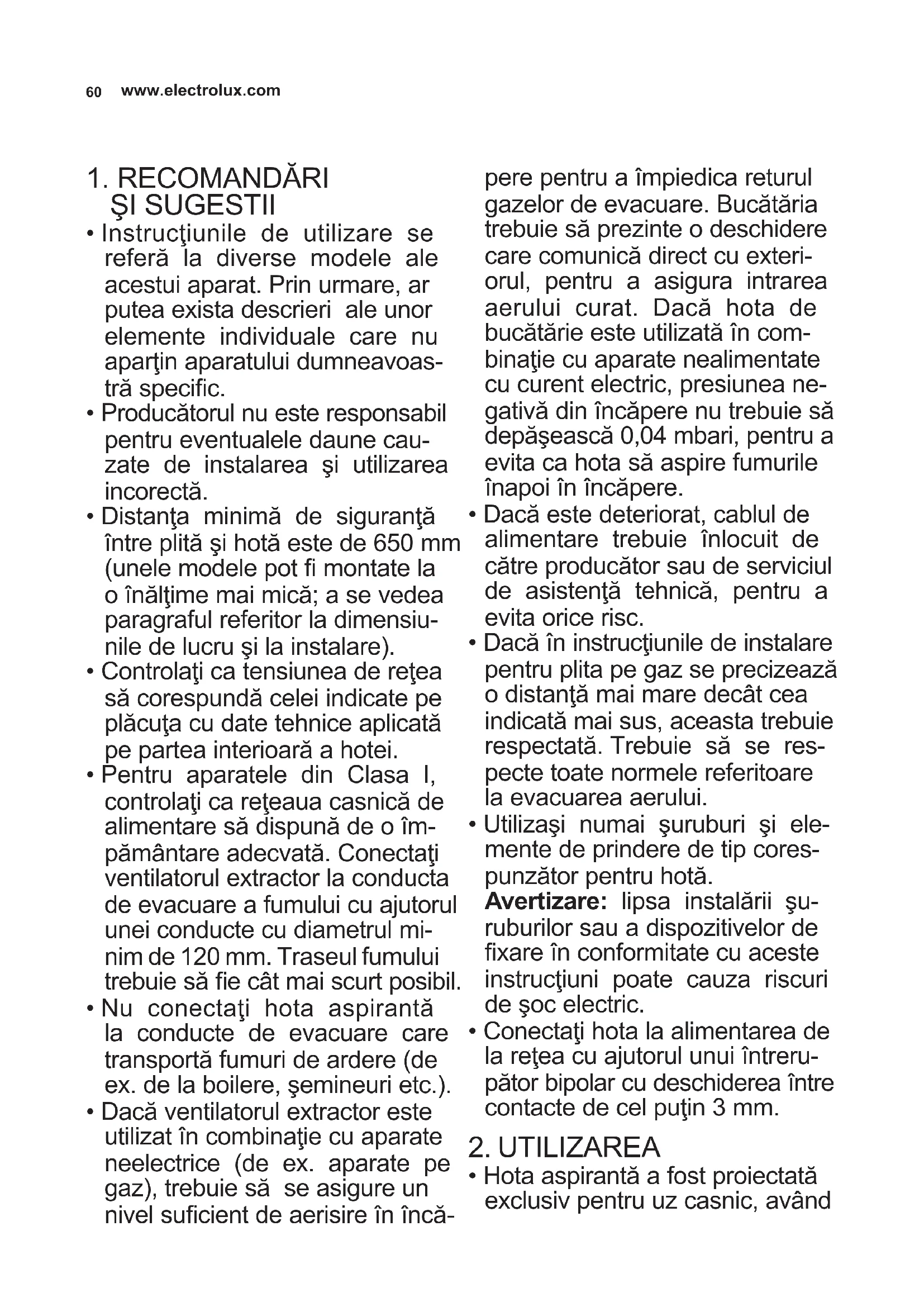 - Hota aspirantă a fost proiectată exclusiv pentru uz casnic, având61 ROMANIAN scopul de a elimina mirosurile din bucătărie.