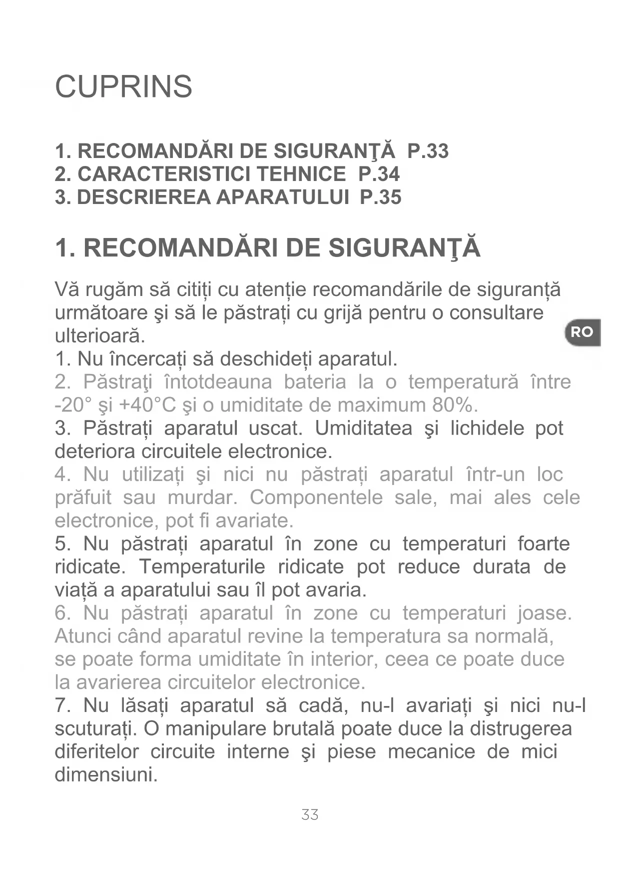 5. Nu păstrați aparatul în zone cu temperaturi foarte