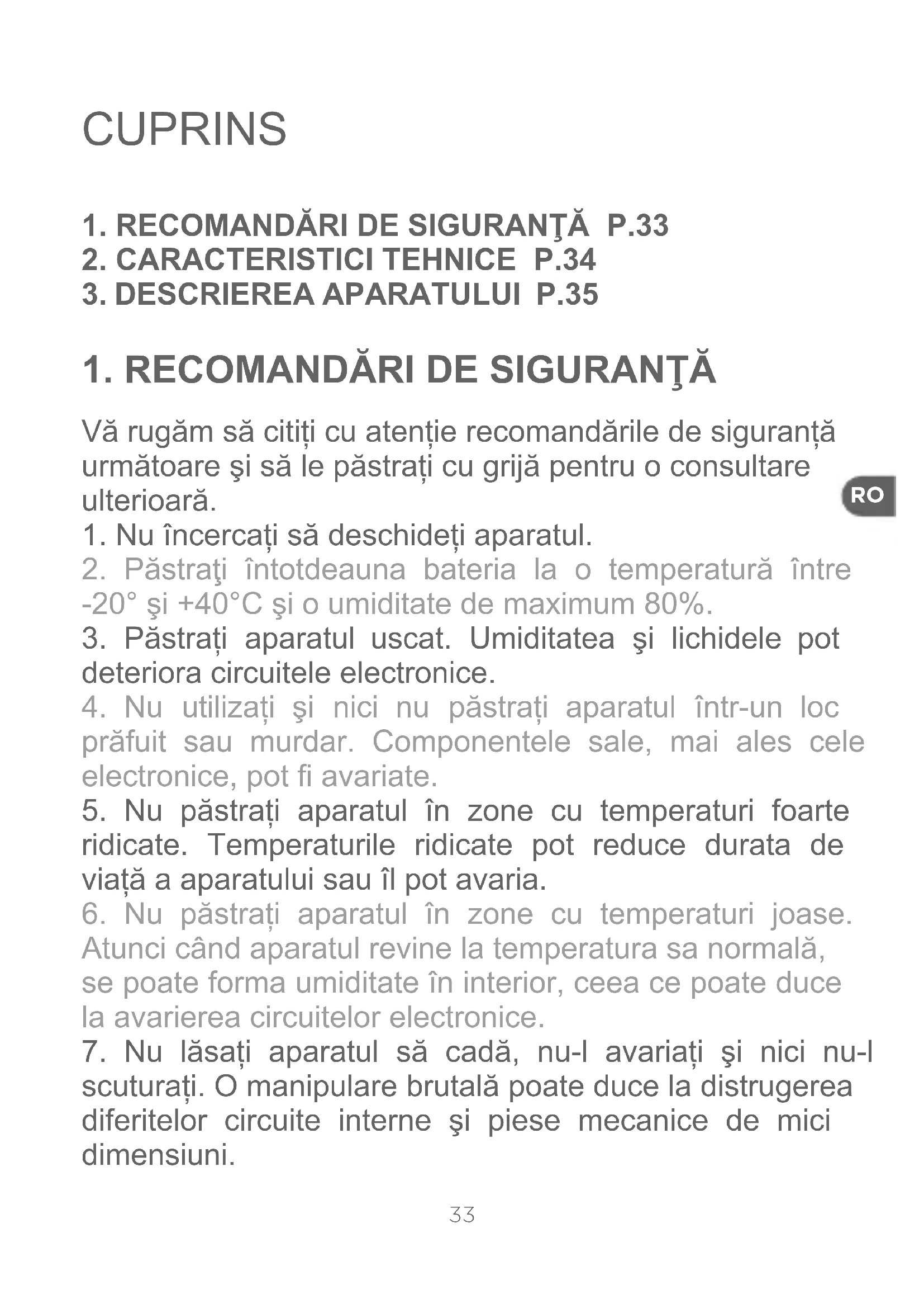 7. Nu lăsați aparatul să cadă, nu-l avariați şi nici nu-l