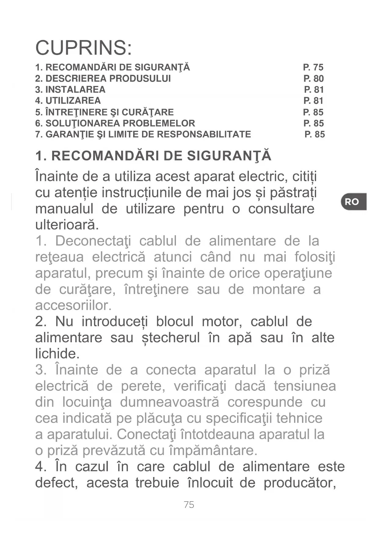 Înainte de a utiliza acest aparat electric, citiți cu atenție instrucțiunile de mai jos și păstrați manualul de utilizare pentru o consultare ulterioară.