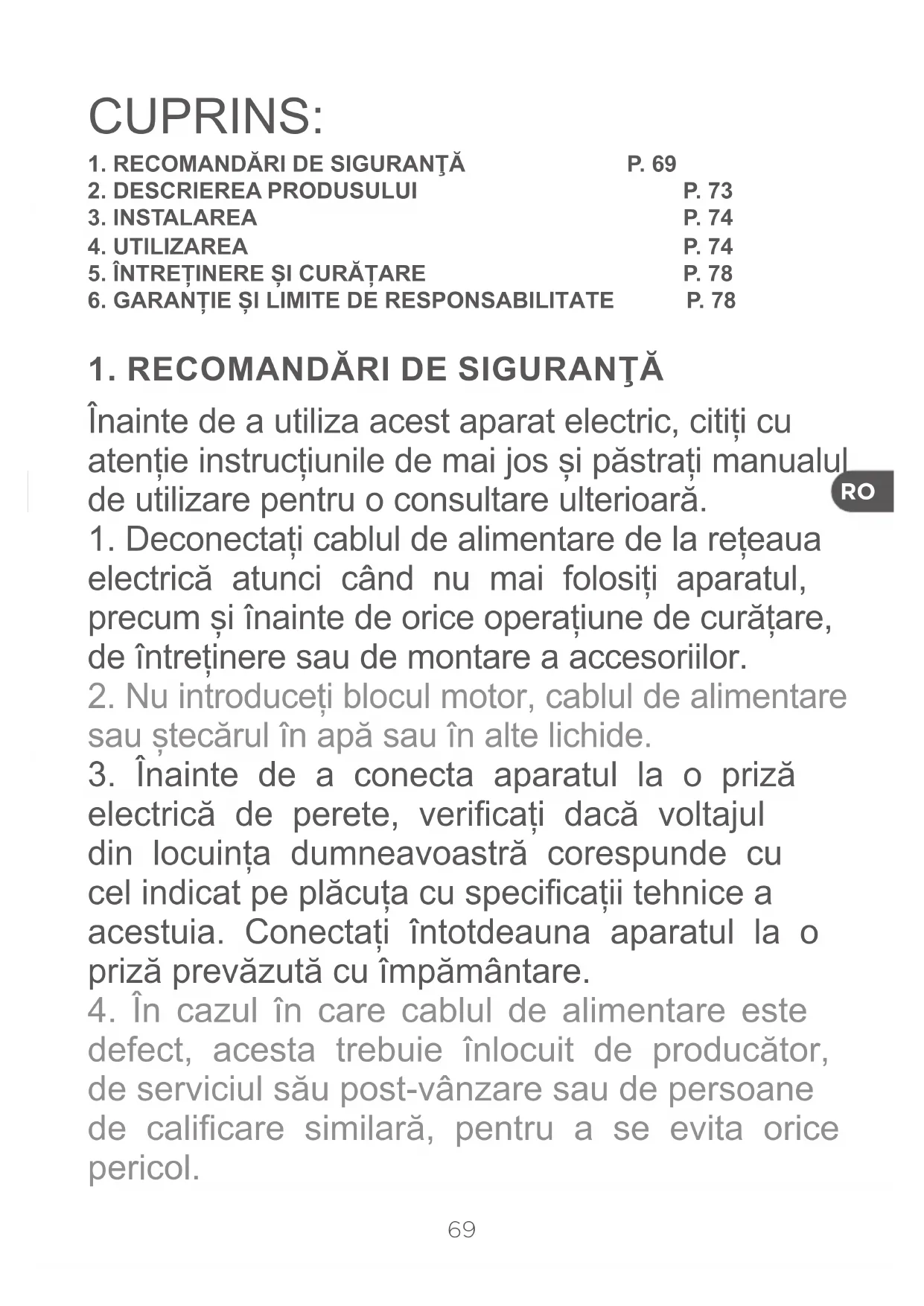 Înainte de a utiliza acest aparat electric, citiți cu atenție instrucțiunile de mai jos și păstrați manualul de utilizare pentru o consultare ulterioară.