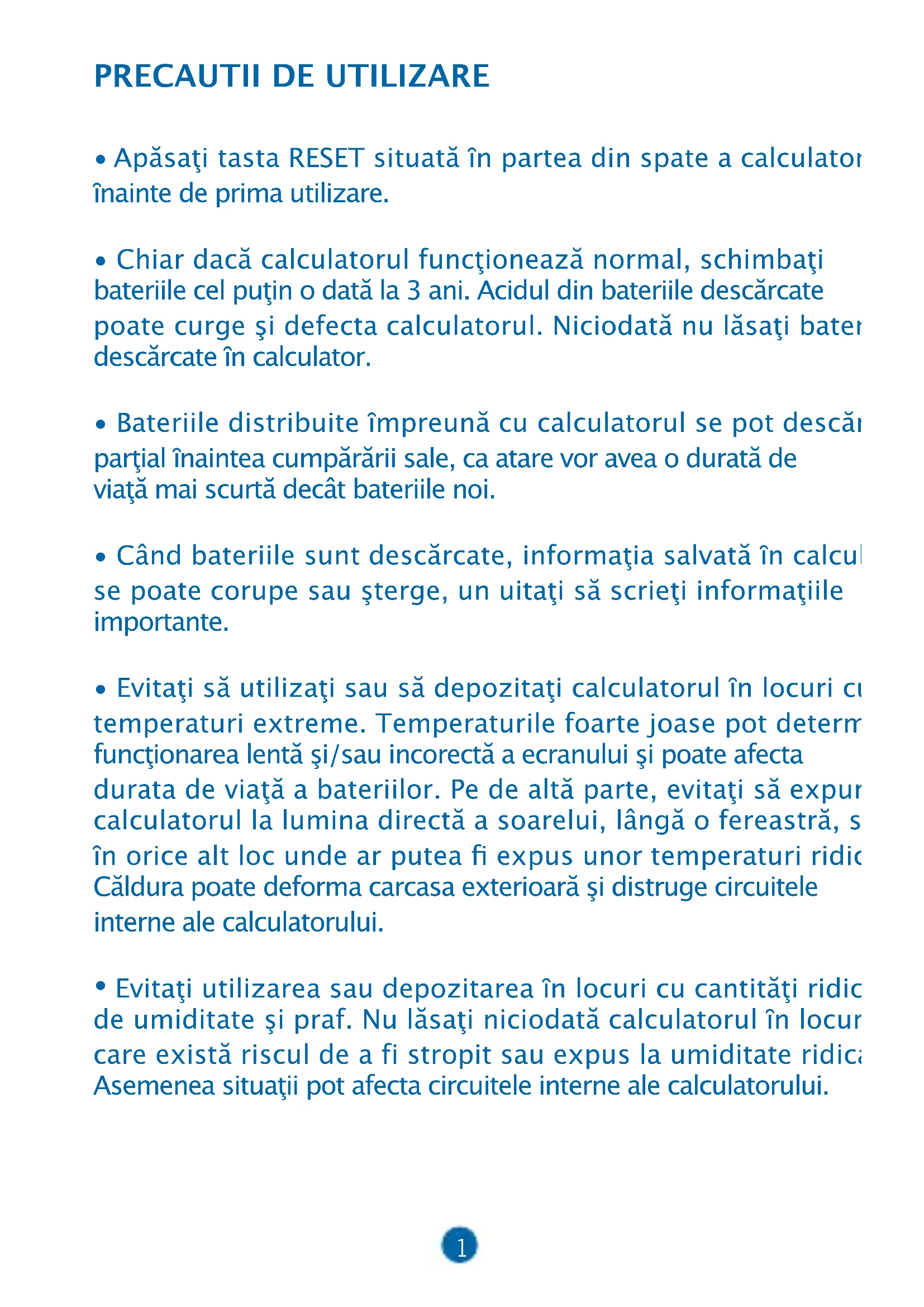 - Chiar dacă calculatorul funcţionează normal, schimbaţi bateriile cel puţin o dată la 3 ani. Acidul din bateriile descărcate poate curge şi defecta calculatorul. Niciodată nu lăsaţi bateriile descărcate ȋn calculator.