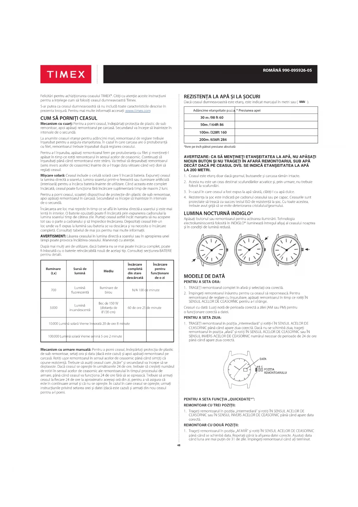 https://www.timex.eu/en_GB/productWarranty.html ©2019 Timex Group USA, Inc. TIMEX, INDIGLO și QUICKDATE sunt mărci comerciale înregistrate ale Timex Group B.V. și ale lialelor sale.51