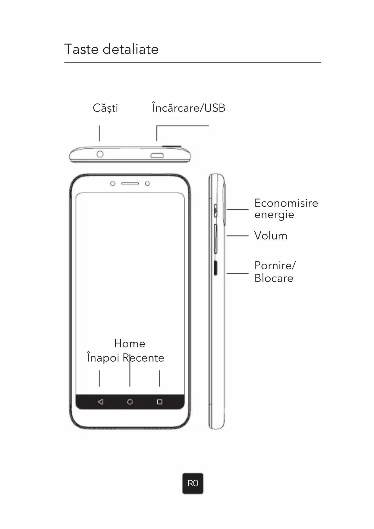 - Pentru a porni aplicația Google™, țineți apăsată tasta „Home“ în timp ce aveți activă o fereastră a browserului sau o aplicație. Taste Recente Pentru a vedea aplicaţille deschise recent, apăsaţi tasta “Recente” Tasta Înapoi Apăsaţi pentru a accesa ecranul precedent Taste Volum Ţineţi apăsat pentru a regla volumulRO Instalare SIM + Card SD Vă recomandăm să închideți telefonul înainte de introducerea sau schimbarea cartelei SIM sau a cardului de memorie.