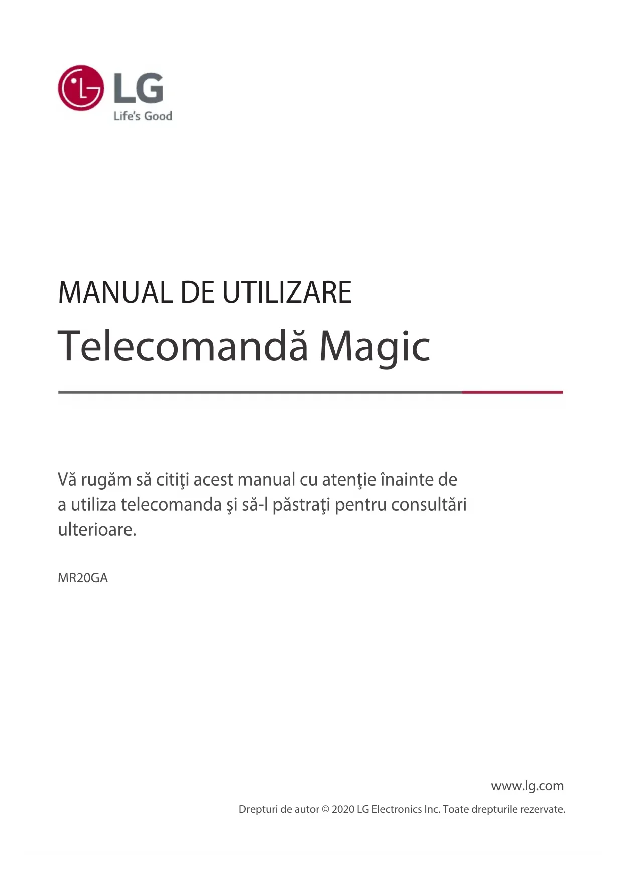www.lg.com Drepturi de autor © 2020 LG Electronics Inc. Toate drepturile rezervate.2 ACCESORII Imaginea cu telecomanda prezentată poate diferită de produsul real. ( În funcţie de ţară) Telecomandă Magic şi baterii alcaline (AA) Manual de utilizare