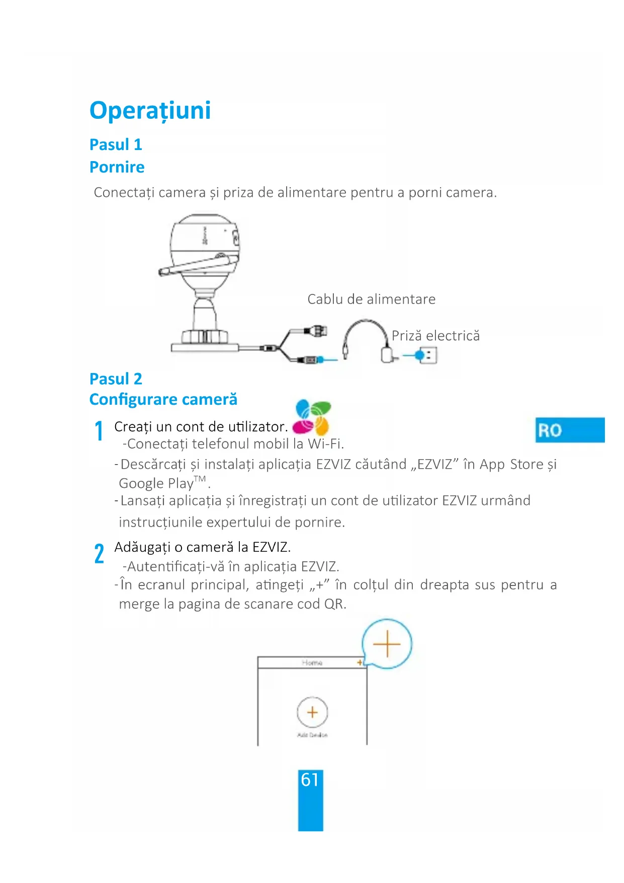 Creați un cont de ulizator. -Conectați telefonul mobil la Wi-Fi. -Descărcați și instalați aplicația EZVIZ căutând „EZVIZ” în App Store și Google Play