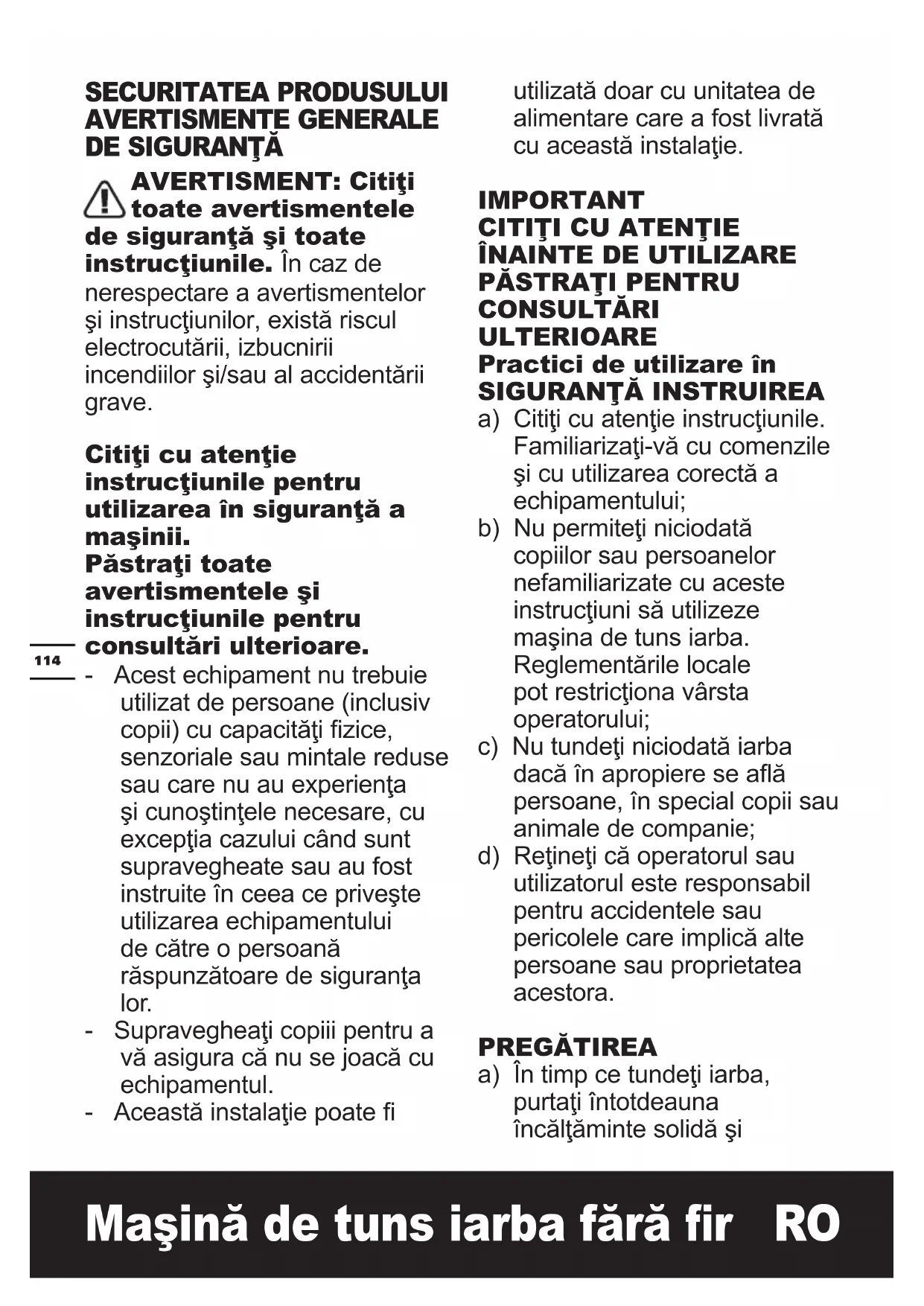C sau la una mai scăzută de atât.126 Maşină de tuns iarba fără r RO