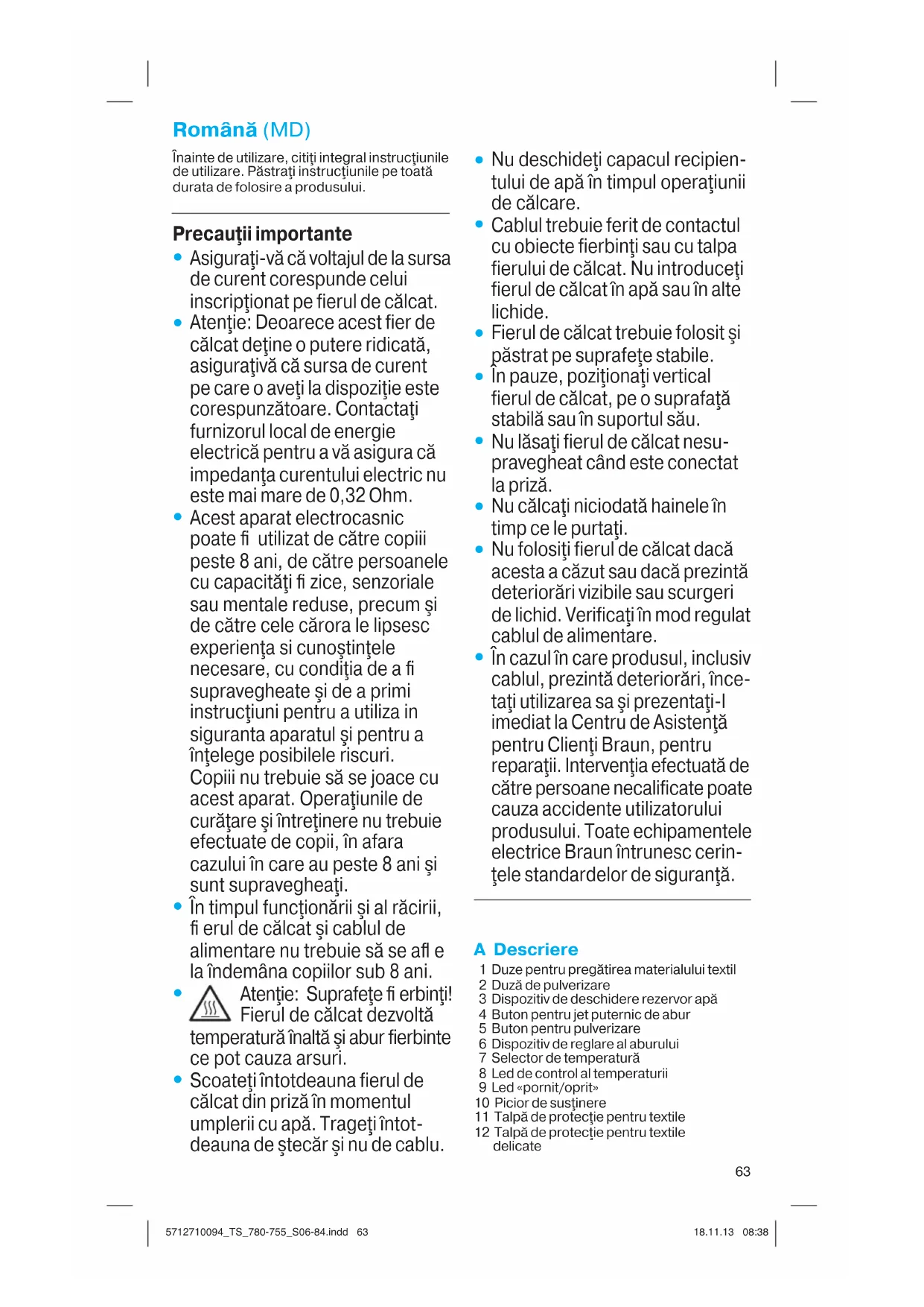 info@braunhousehold.com.tr 5712710094_TS_780-755_S06-84.indd 625712710094_TS_780-755_S06-84.indd 62 18.11.13 08:3818.11.13 08:3863 Înainte de utilizare, citiţi integral instrucţiunile de utilizare. Păstraţi instrucţiunile pe toată durata de folosire a produsului. Precauţii importante