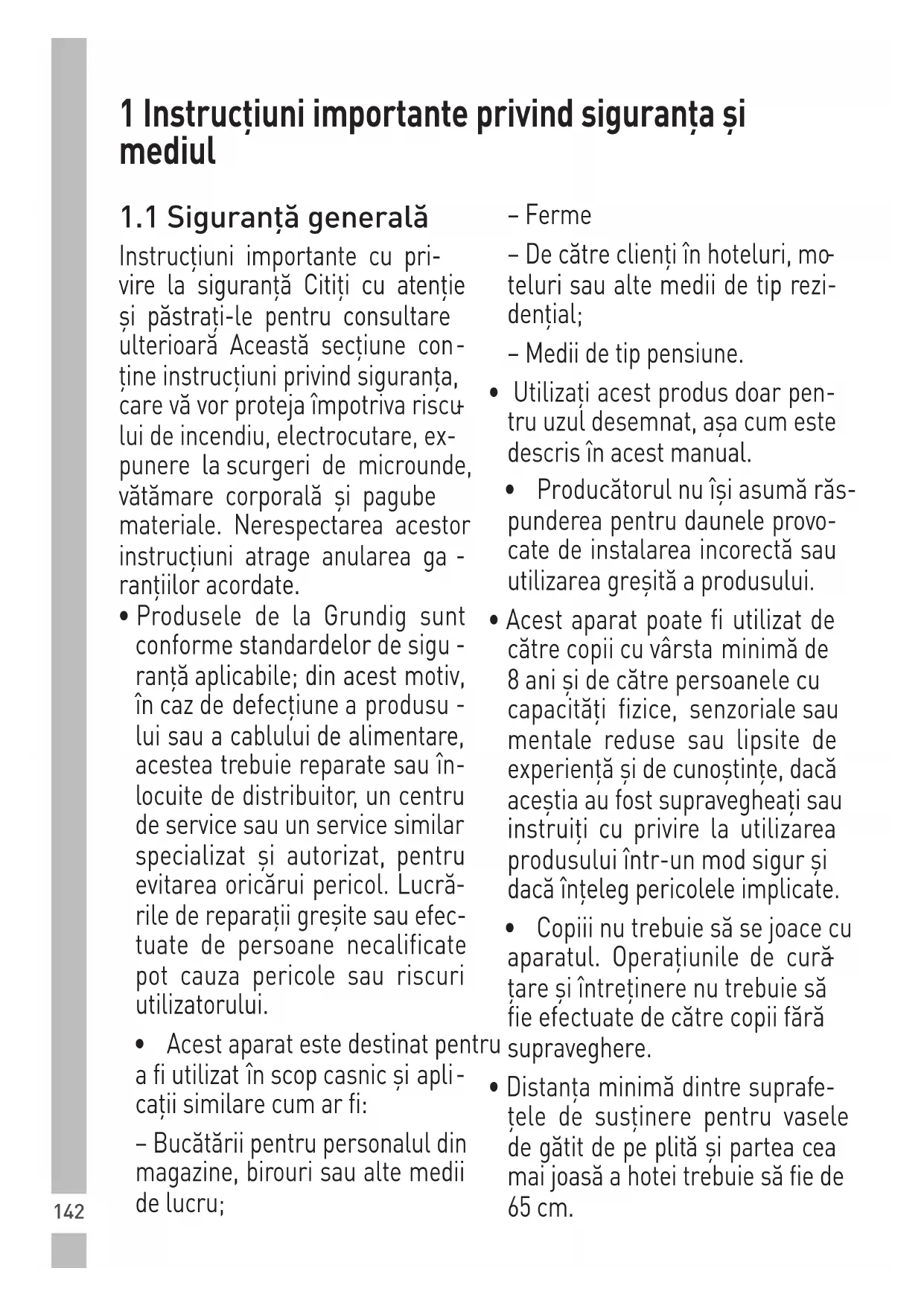 - Acest aparat poate fi utilizat de către copii cu vârsta minimă de 8 ani și de către persoanele cu capacități fizice, senzoriale sau mentale reduse sau lipsite de experiență și de cunoștințe, dacă aceștia au fost supravegheați sau instruiți cu privire la utilizarea produsului într-un mod sigur și dacă înțeleg pericolele implicate.
