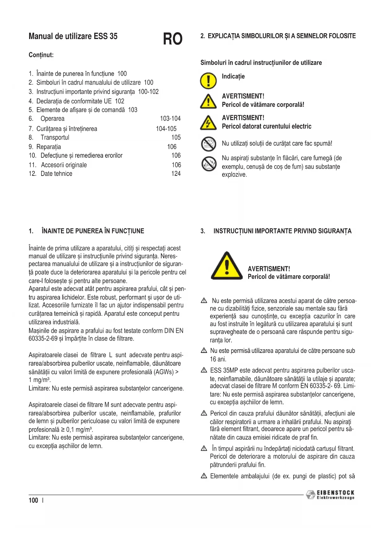 ESS 35MP - Aspirator Eibenstock - Manual de utilizare gratuit