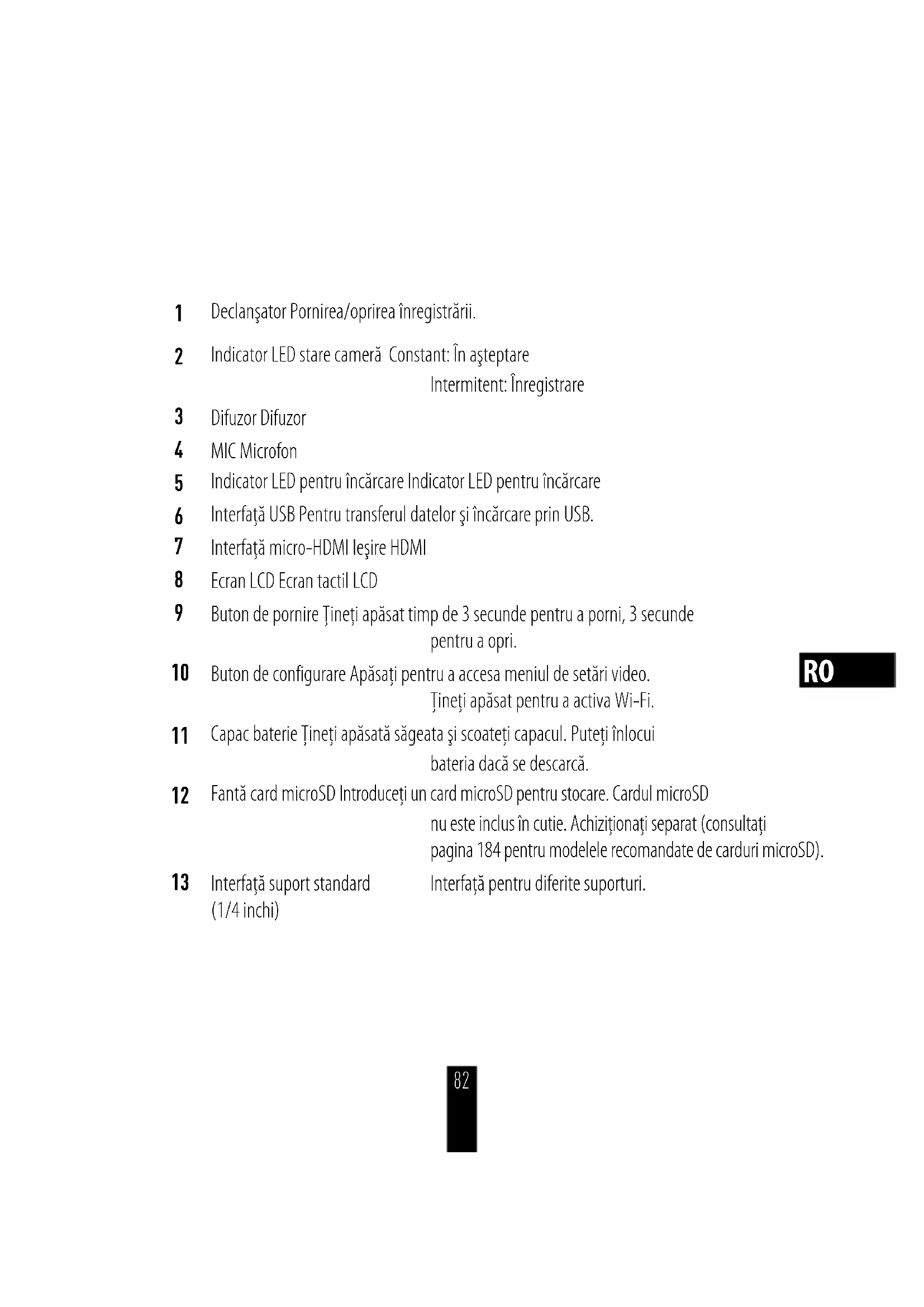Fantă card microSD Introduceţi un card microSD pentru stocare. Cardul microSD nu este inclus în cutie. Achiziţionaţi separat (consultaţi pagina 184 pentru modelele recomandate de carduri microSD).