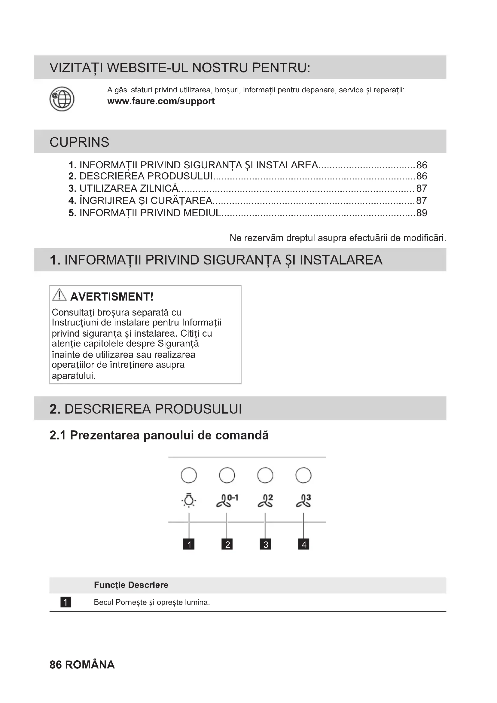 MANUAL DE UTILIZARE FHB92671XA FAURE