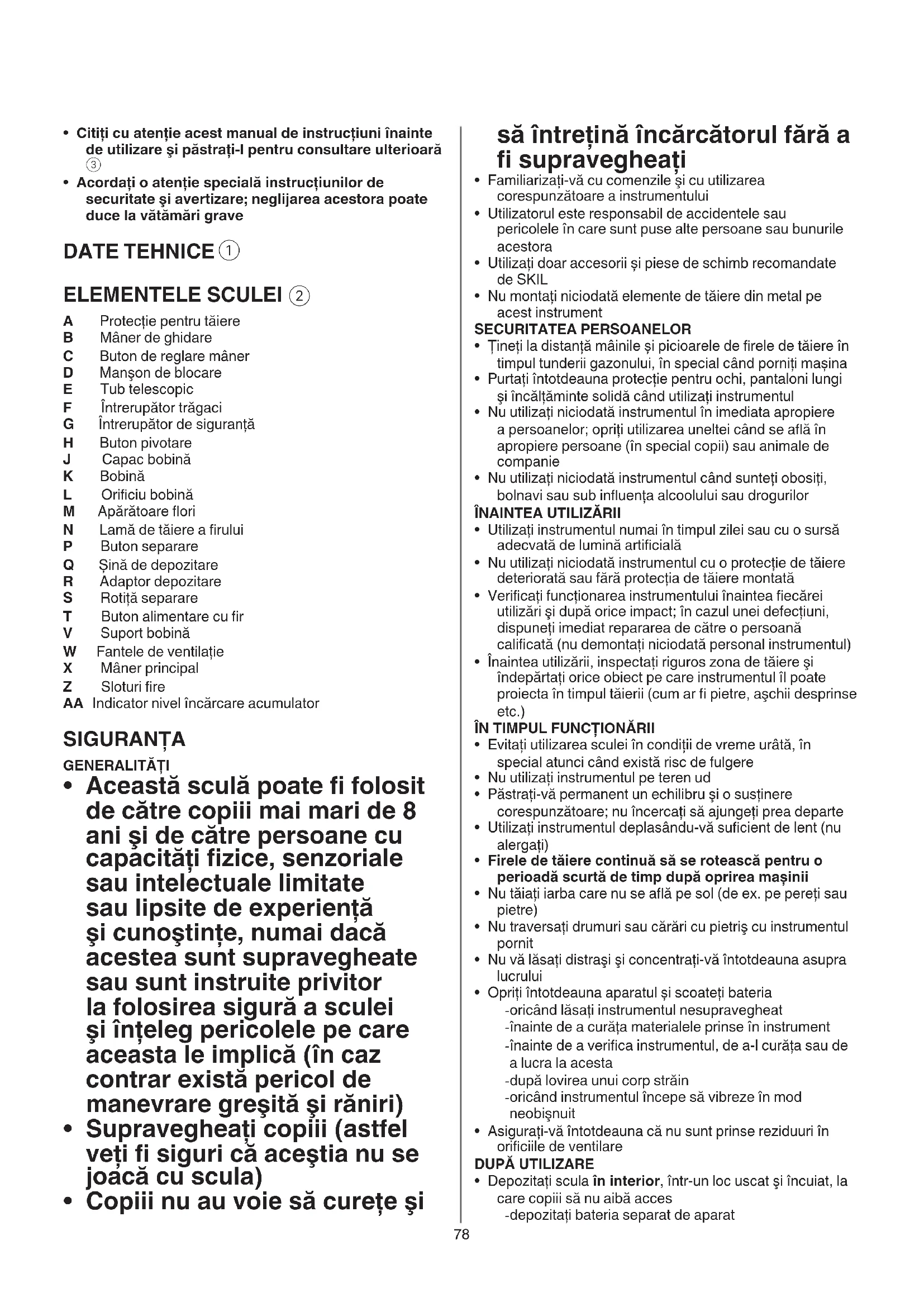 0240 AA - Tăietor de iarbă SKIL - Manual de utilizare gratuit